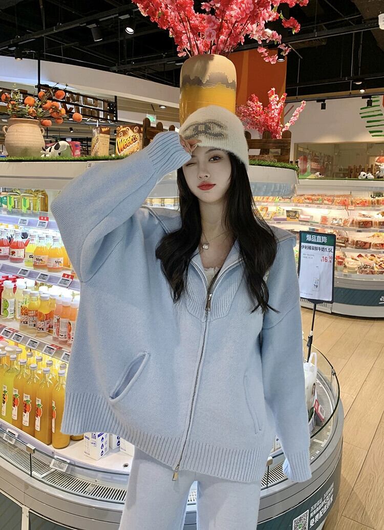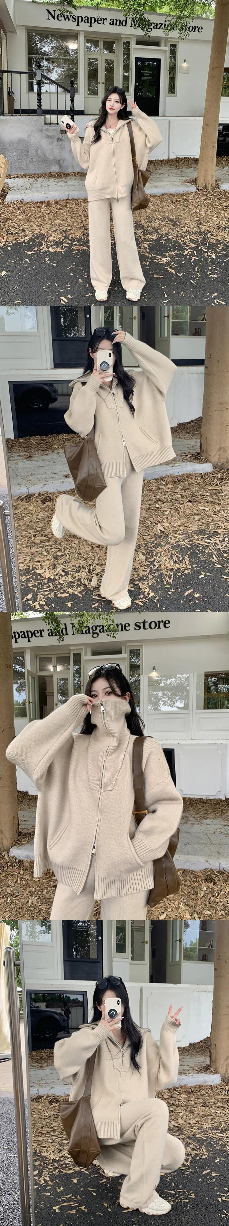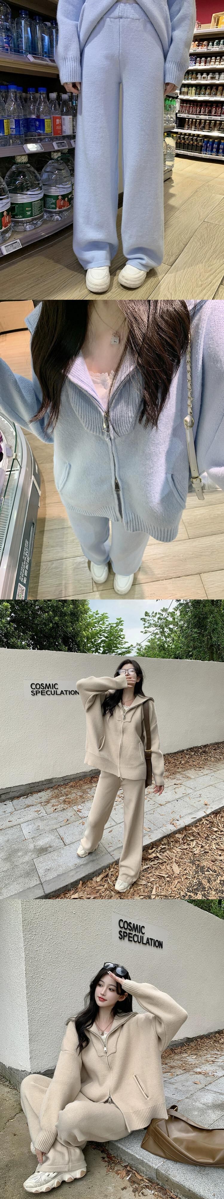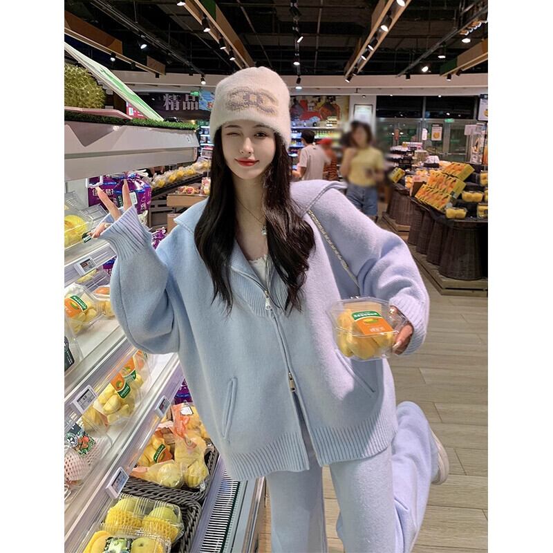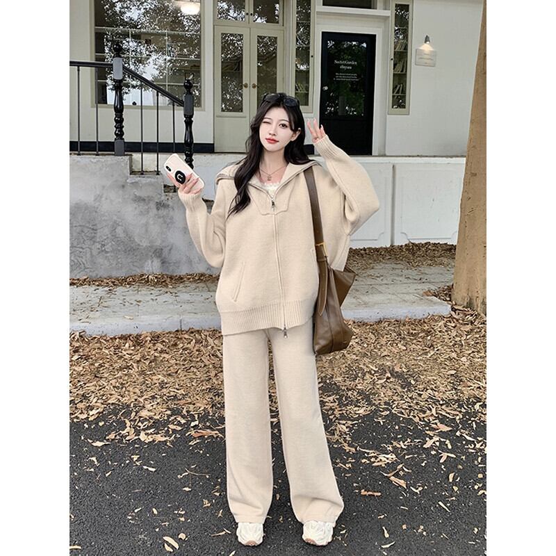 ラペルデザイン長袖セータージャケットニットカジュアルワイドレッグパンツ女性の秋 2023 新しいファッションスーツ ロング オータム 秋物 missk58316228296