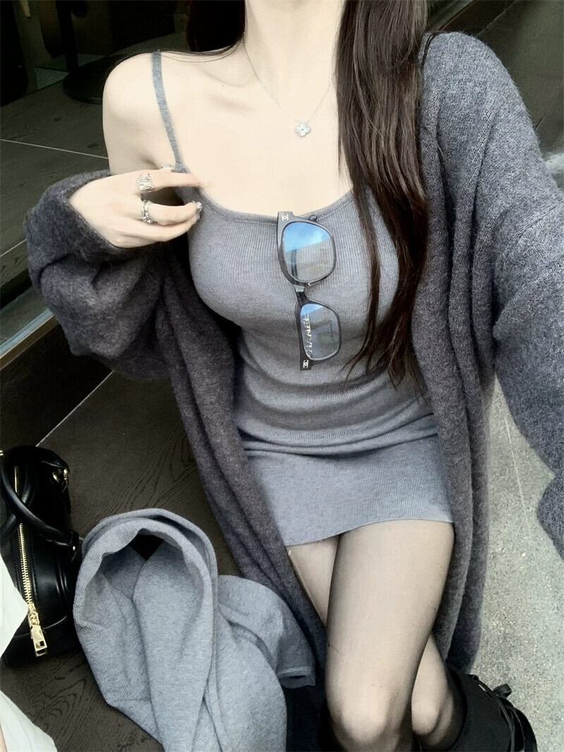 Pure Desire ホットガールロングセータージャケットスリムスリムサスペンダードレス女性の秋 2023 スーツ オータム 秋物 missk44861118495