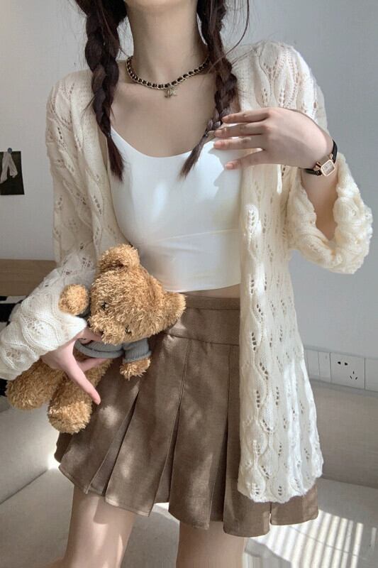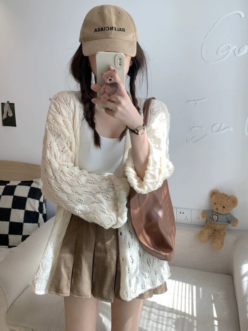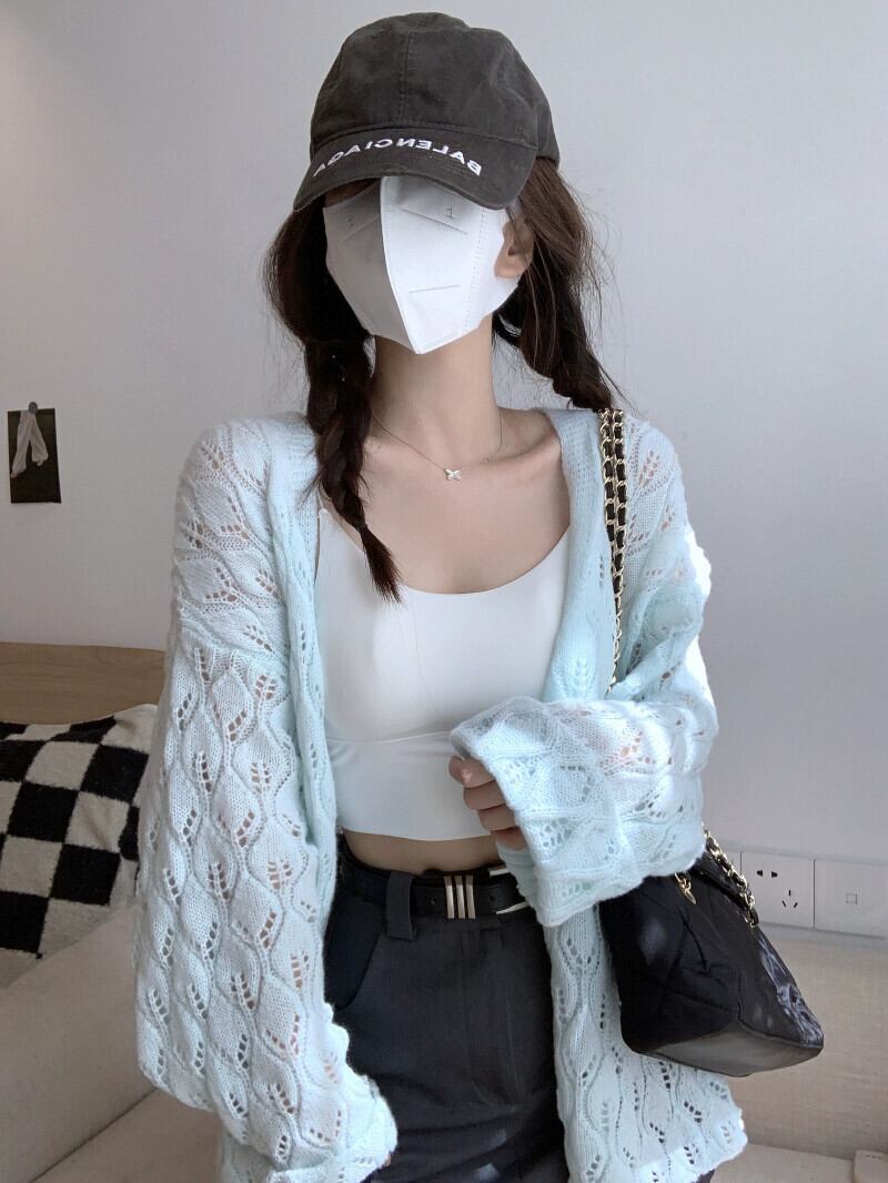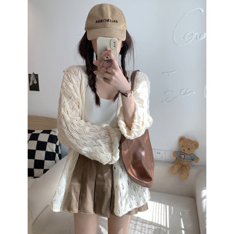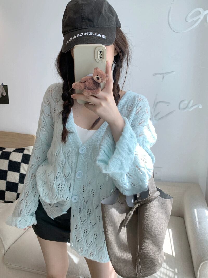 中空長袖セーター女性秋 2023 新しい薄型頑丈なデザインの小さな新鮮なルーズ日焼け防止カーディガン ロング オータム 秋物 missk99564873670