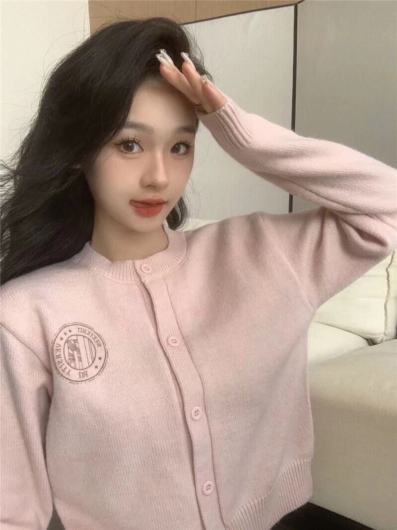 スタイル長袖セーター女性秋 2023 新しい甘いプリントショートルーズデザインセーターカーディガン ロング 大人ガーリー スウィート キュート カジュアル オータム 秋物 missk39570575096