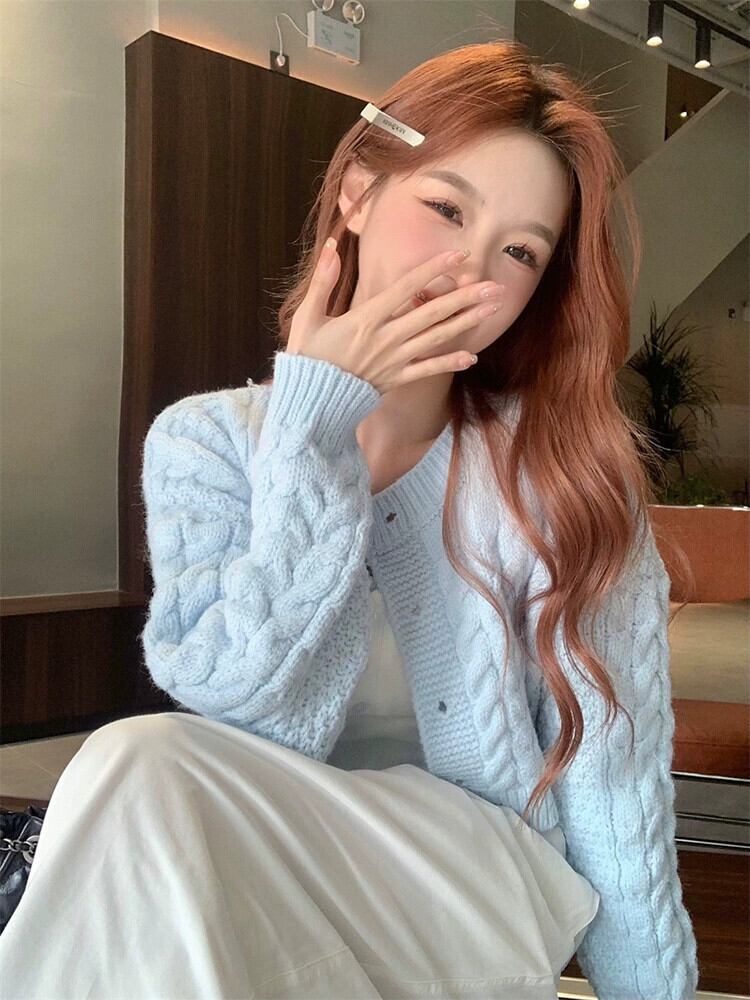 優しい風ソフトもちツイストセーター女性の秋 2023 ショートスタイルルーズ長袖ニットカーディガン ロング オータム 秋物 missk13917206768