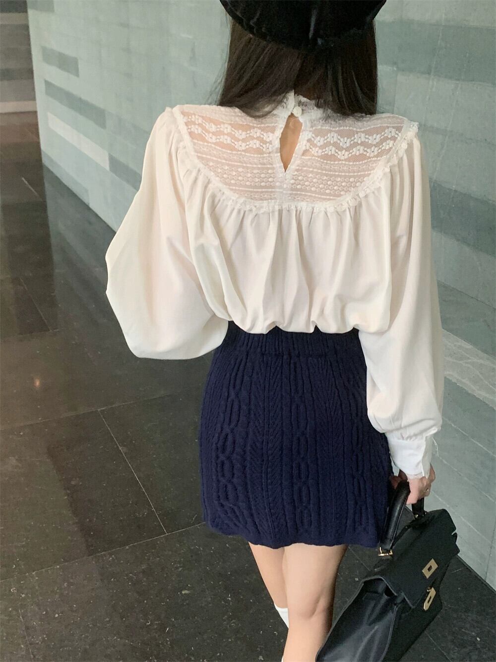 レトロダイヤモンド V ネックニットベストレーススプライシング長袖シャツ女性秋 2023 新しいファッションツーピースセット ロング オータム 秋物 Vネック missk71973043575