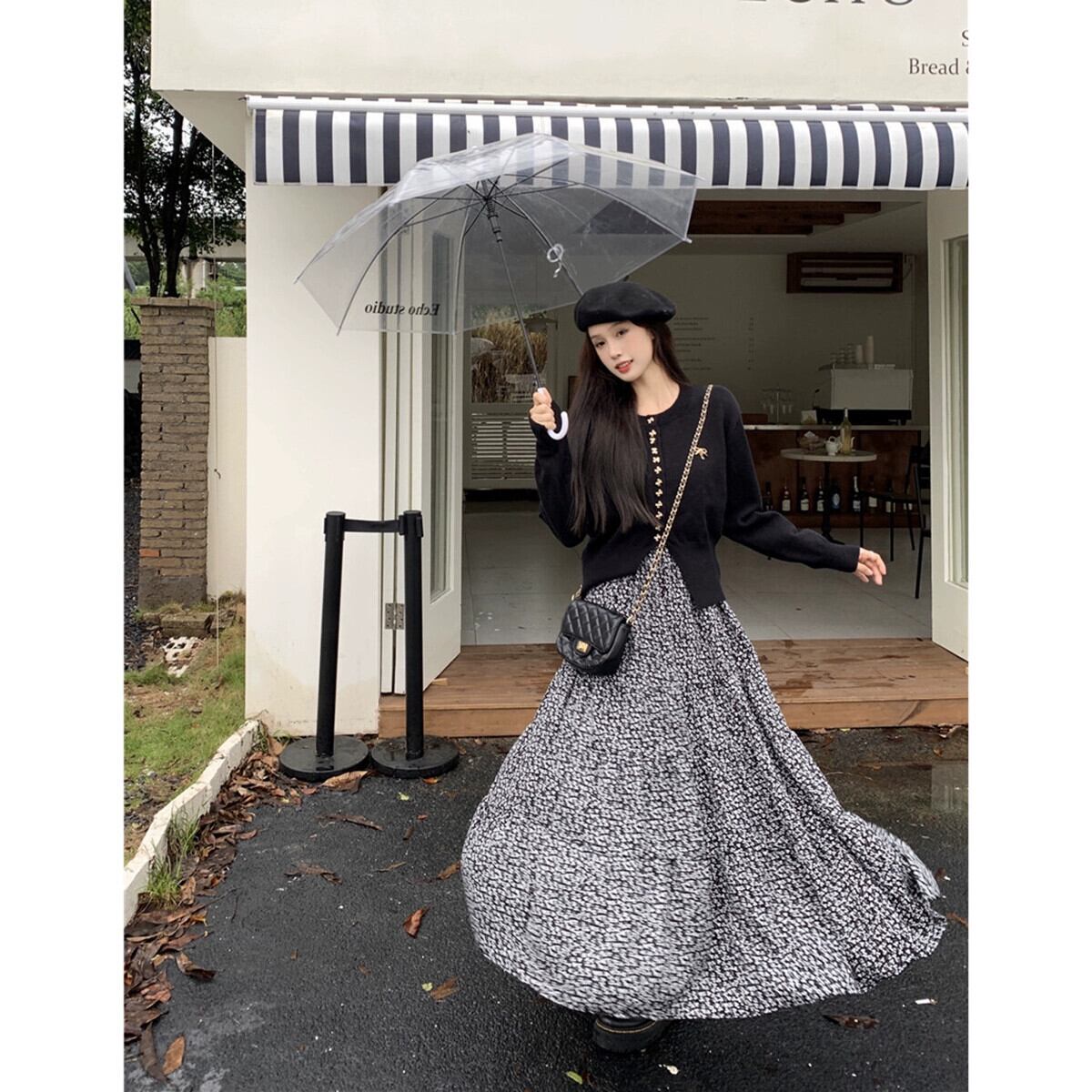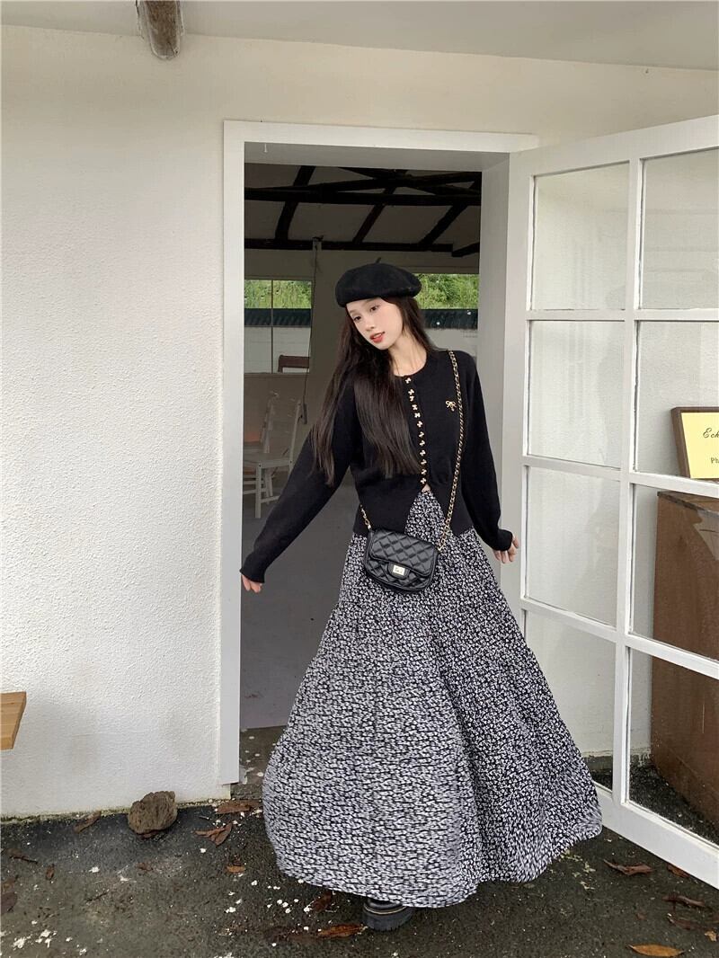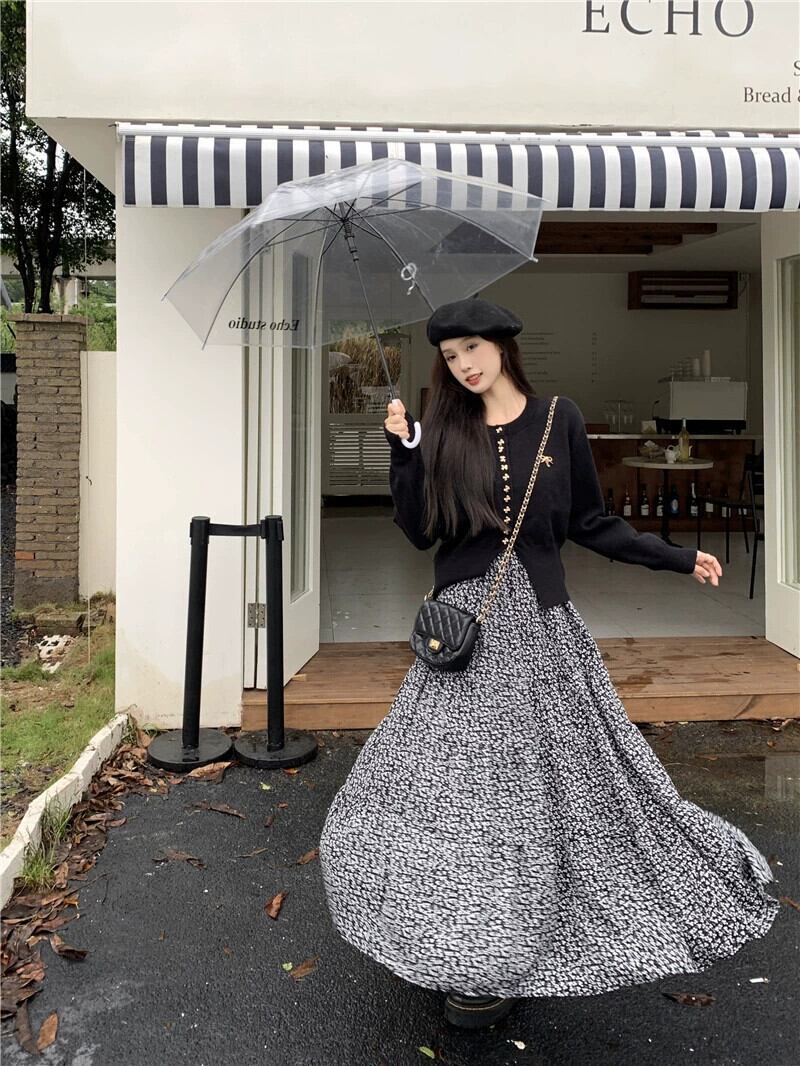 色:黒いセーター,スカート