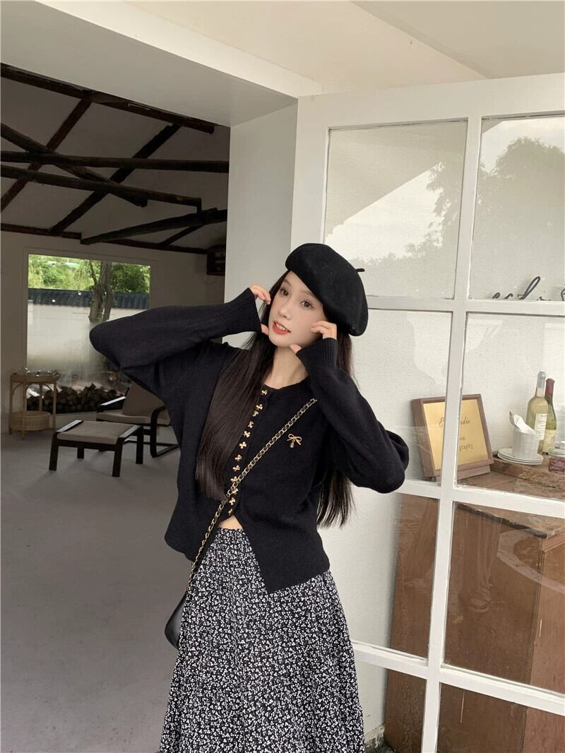 Xiaoxiangfeng ニットセーター女性秋 2023 新しい弓のデザインと eign スタイルアウターショート長袖カーディガン ロング リボン オータム 秋物 missk63232720989