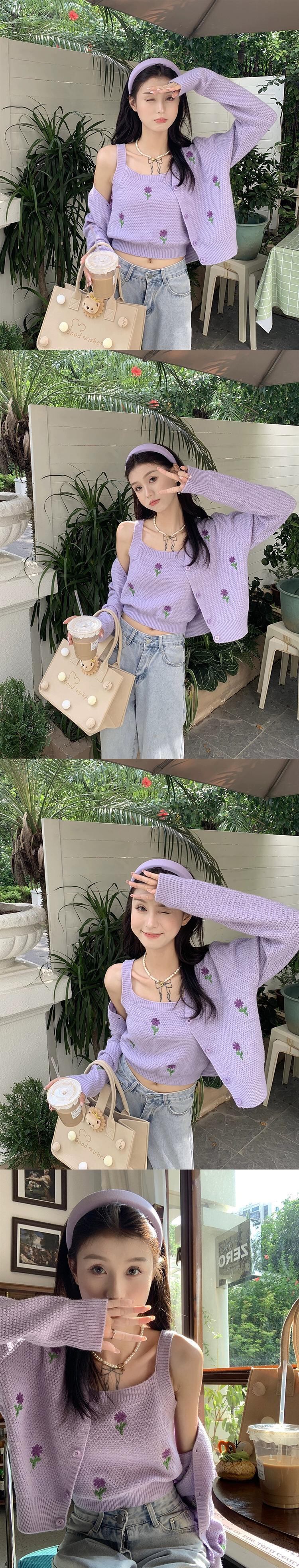 甘い重工業刺繍長袖ニットカーディガンキャミソール女性 2023 秋の新ファッション 2 点セット ロング レッド 大人ガーリー スウィート キュート カジュアル オータム 秋物 missk68518634786