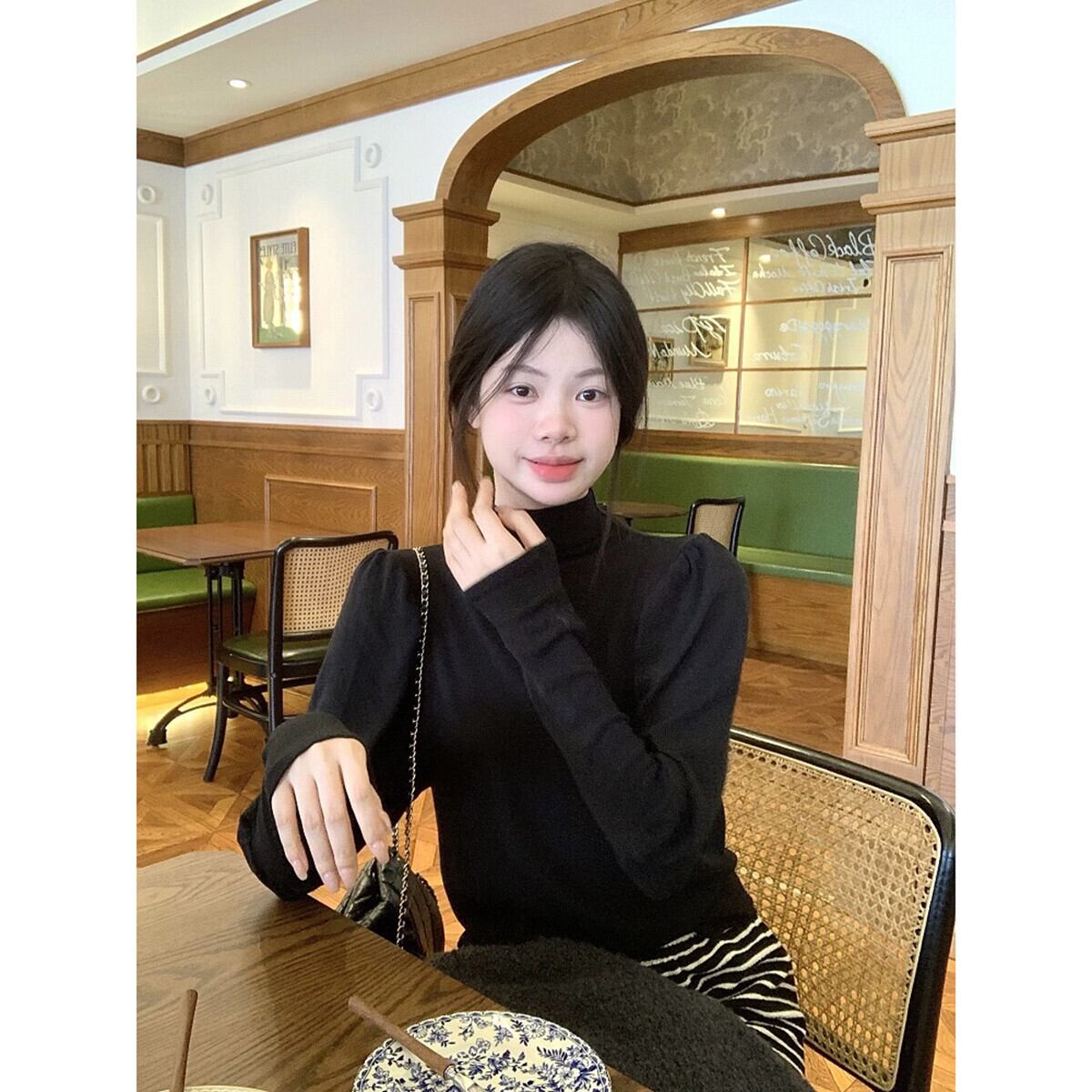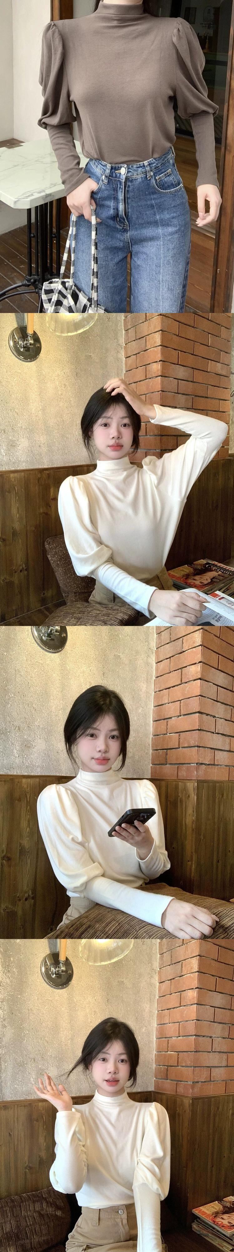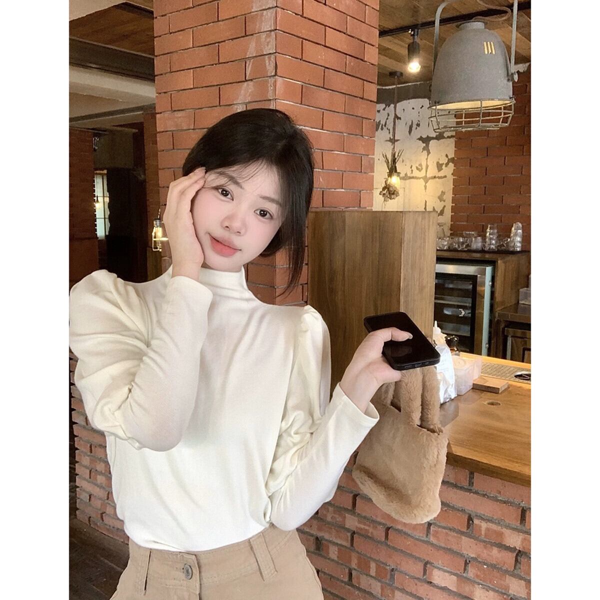 ハーフタートルネック長袖ボトミングシャツ女性 2023 秋の新しいレトロな宮殿スタイルのデザインパフスリーブとインナー Tシャツ ロング レース オータム 秋物 missk52108569755