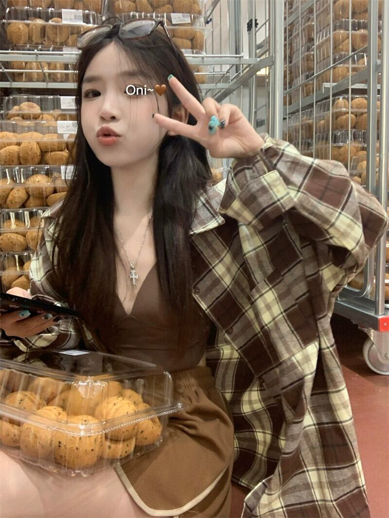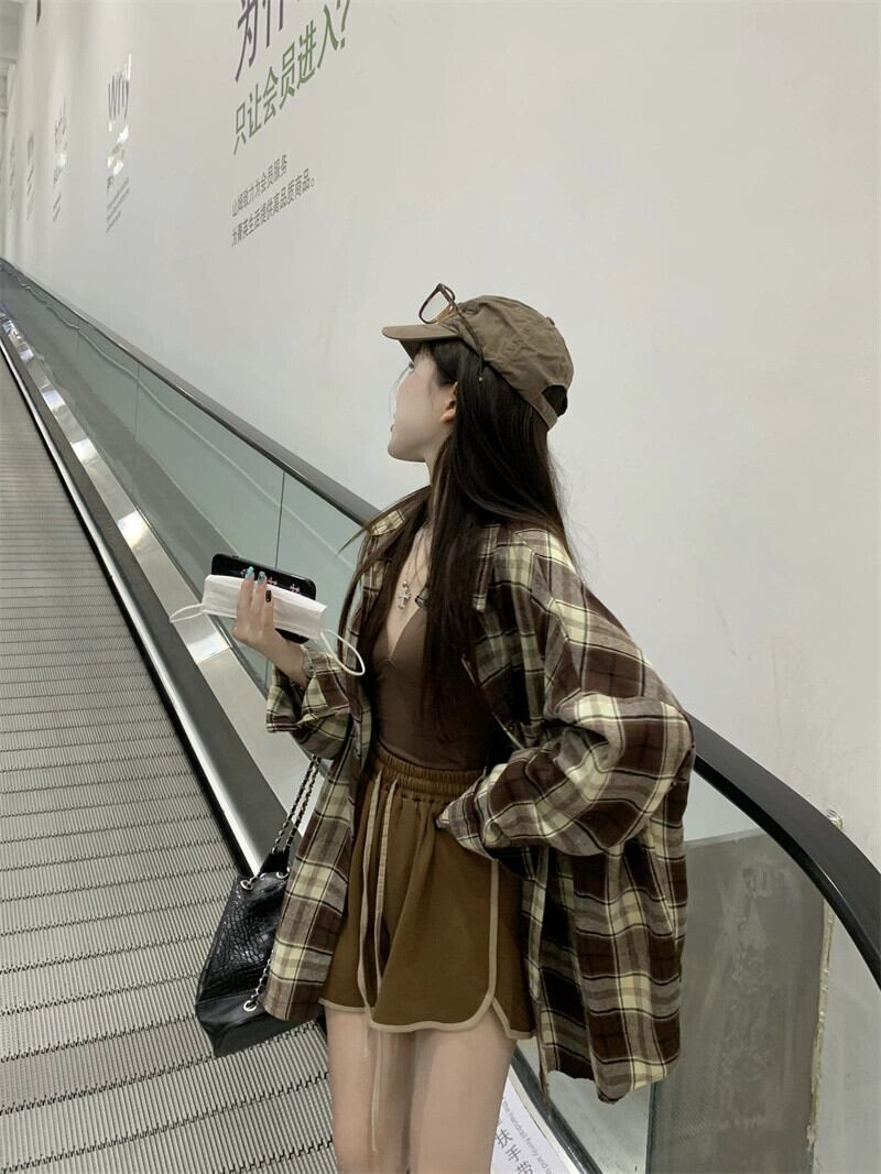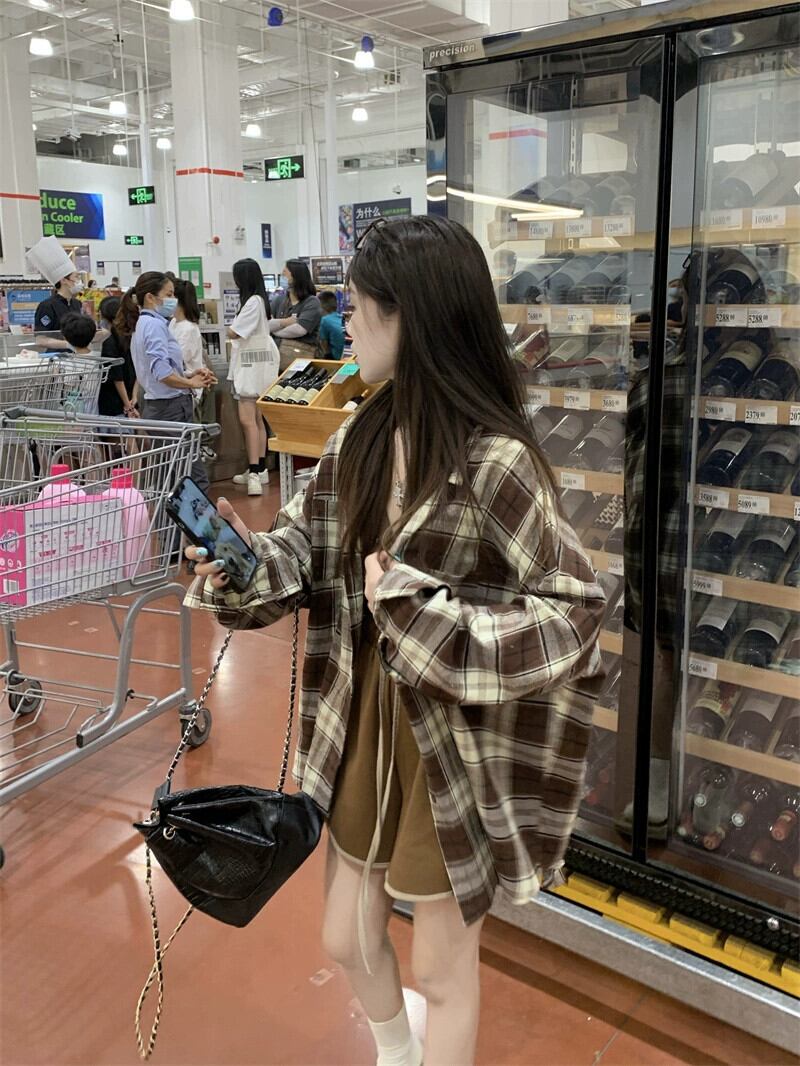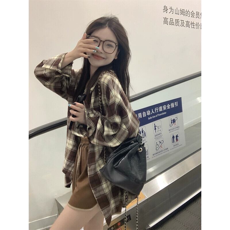 2023 秋の新しいレトロな怠惰なスタイルのカジュアルなチェック柄長袖シャツ女性、多用途、スリムでシックな日焼け防止トップ ロング オータム 秋物 missk45244049458