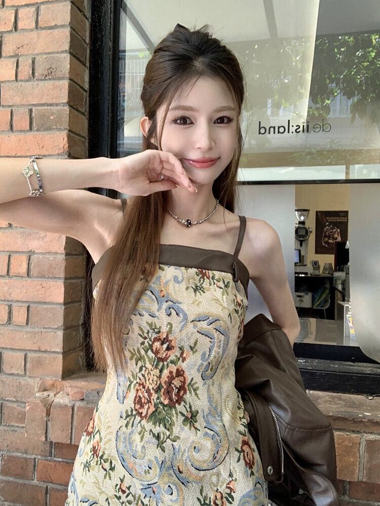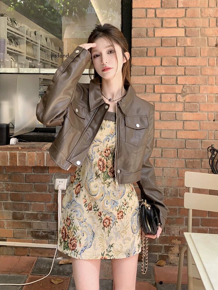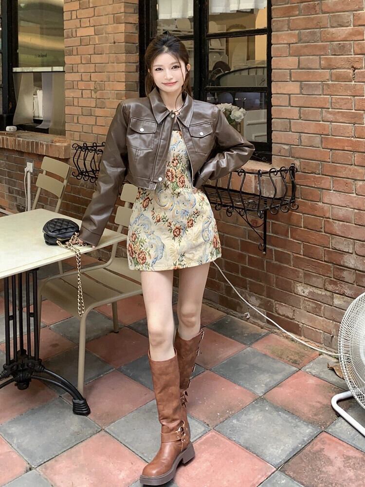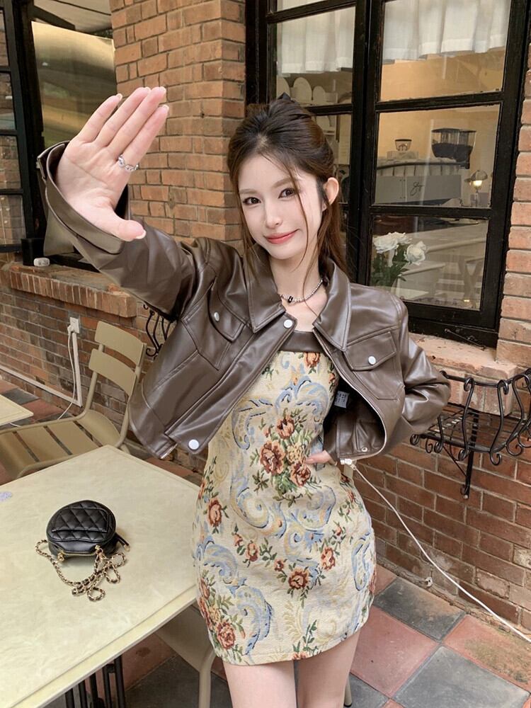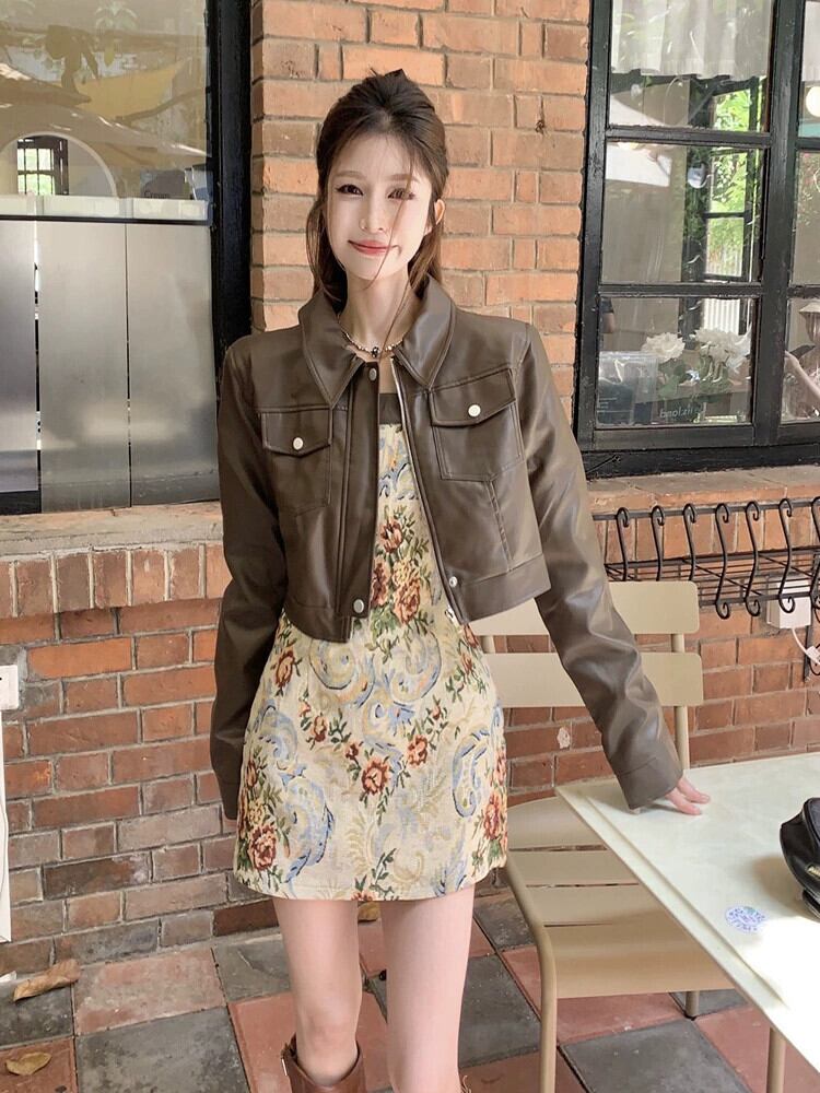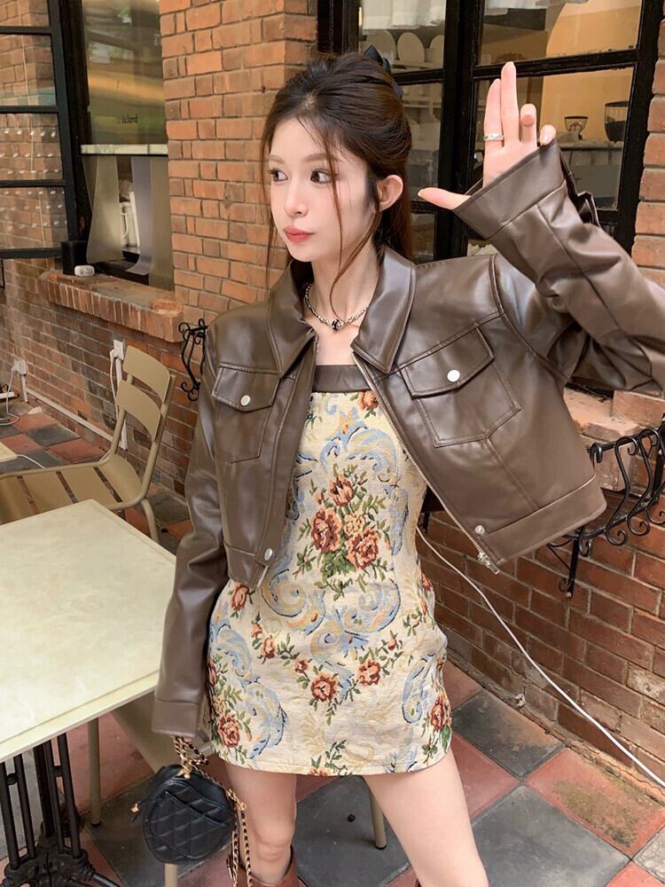 色:フラワースリング,コーヒーカラーのレザージャケット