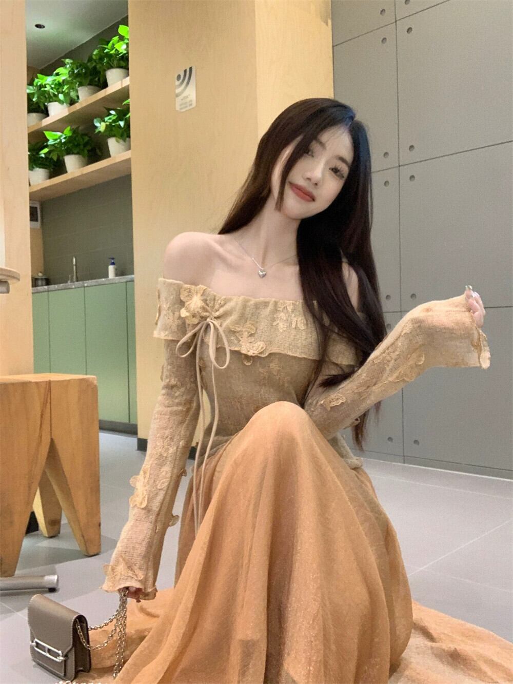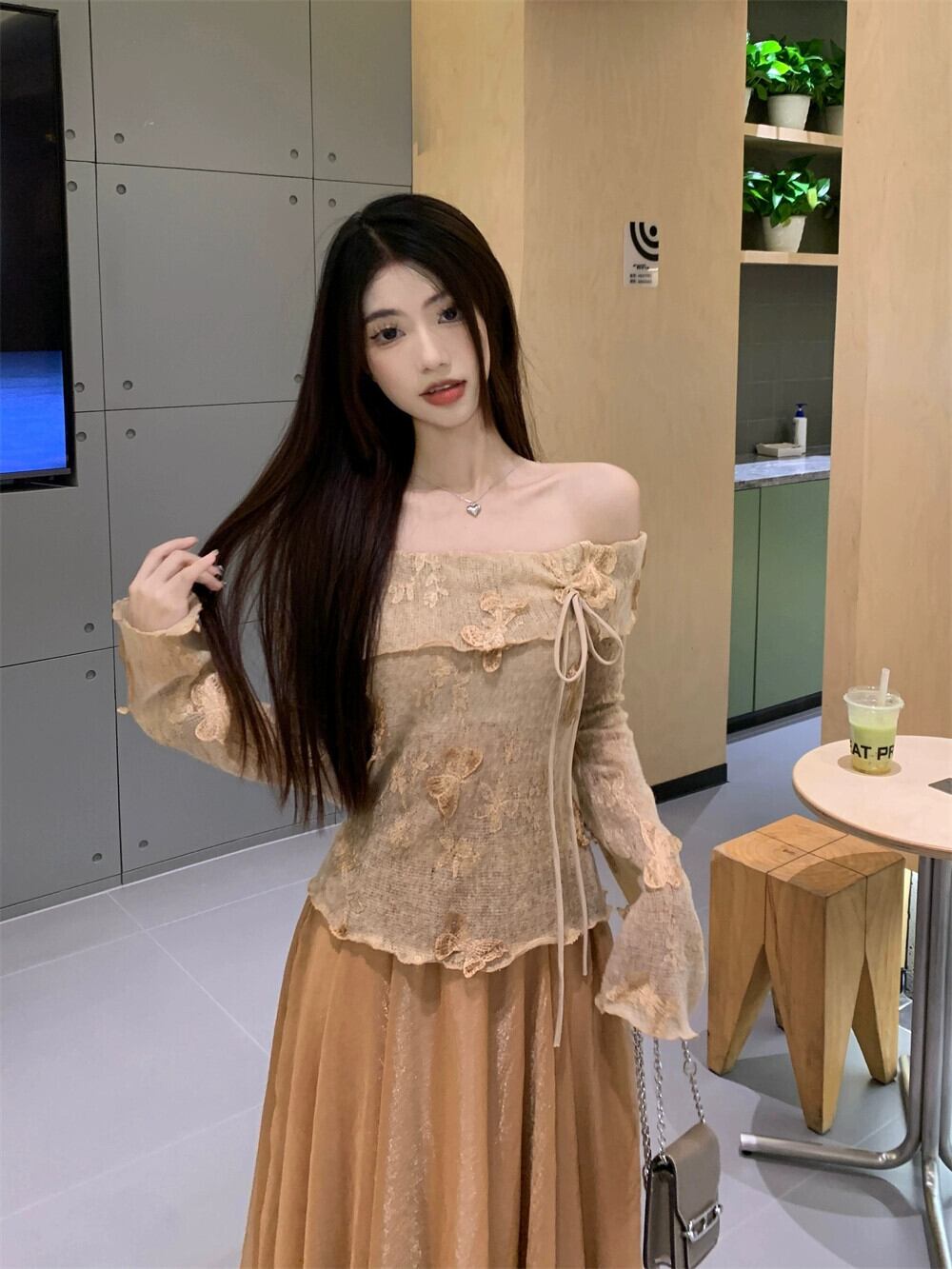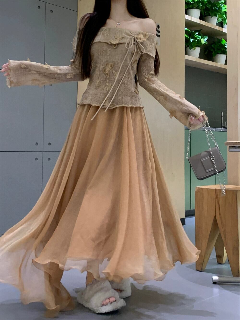 フランス重工業刺繍ワンショルダー長袖トップメッシュハーフレングススカート女性秋 2023 新しいファッションスーツ ロング オータム 秋物 missk62370361328