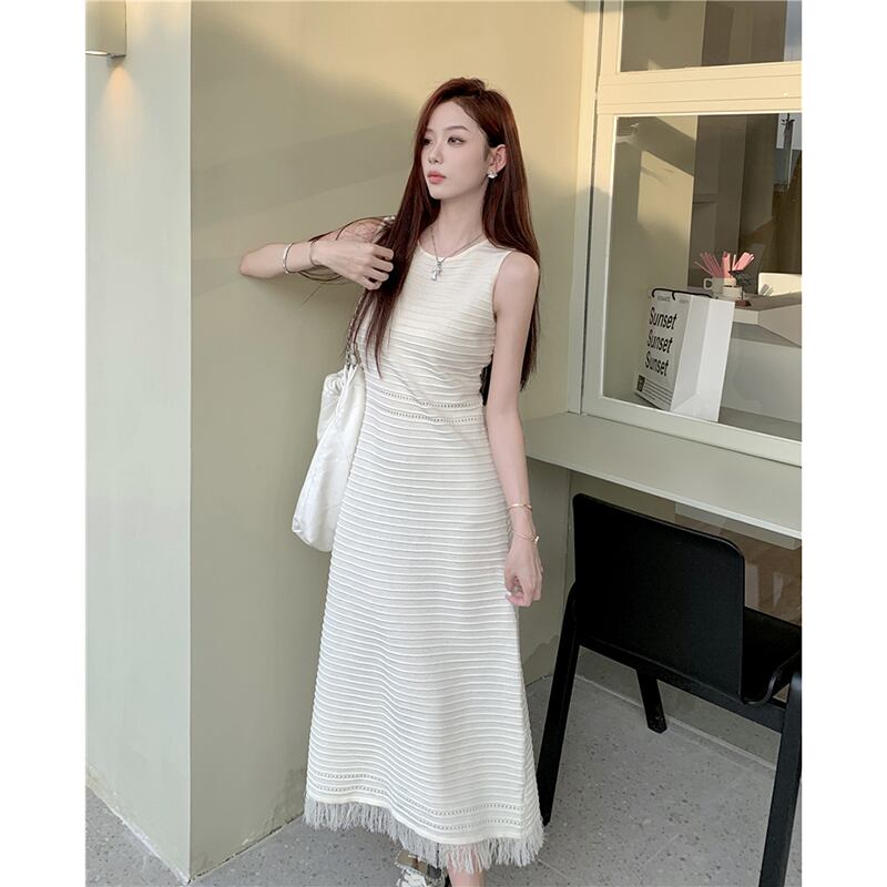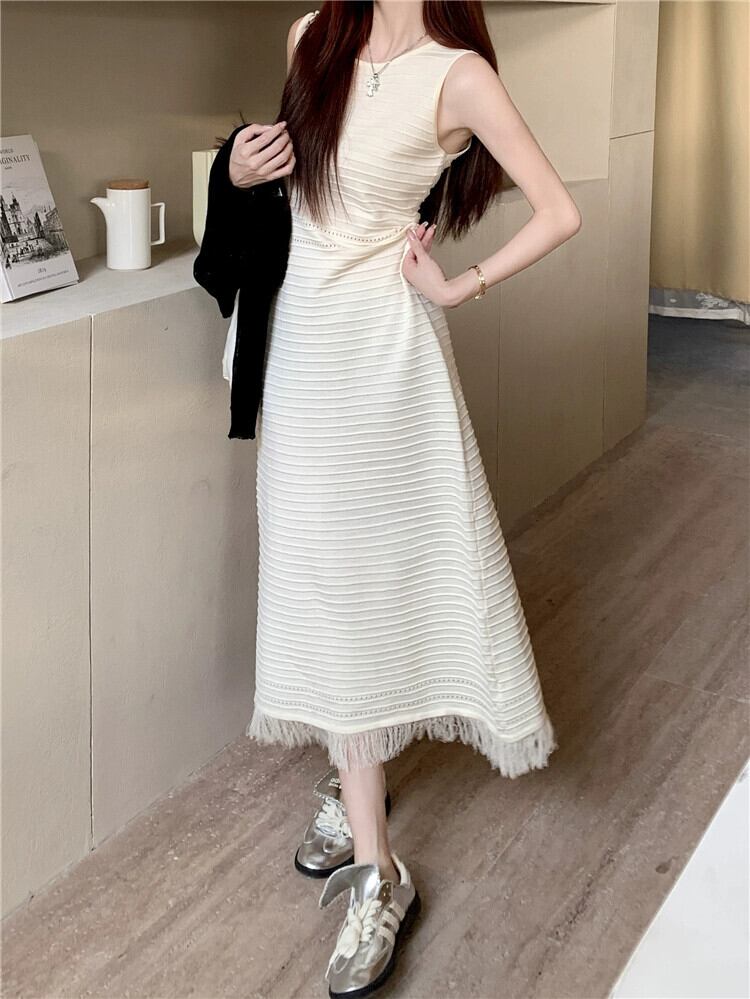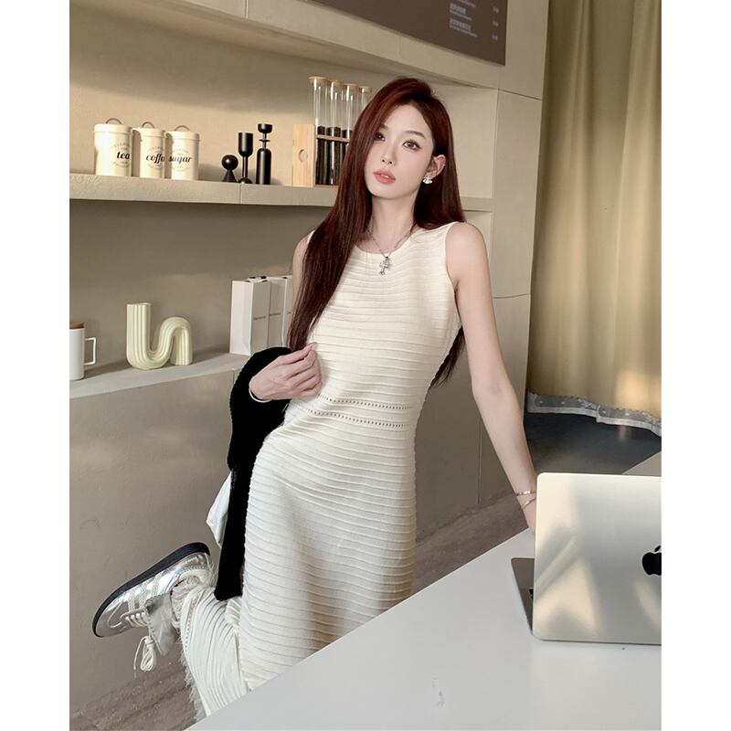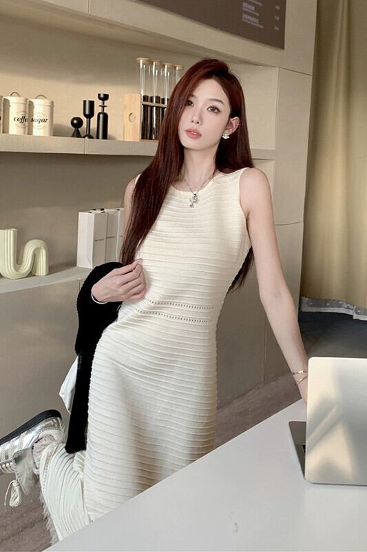 2023 秋の新ファッションデザイン気質電話ベストドレス女性の無地ハイウエストニットロングスカートトレンディ ハイウェスト オータム 秋物 ソリッドカラー missk6833451609