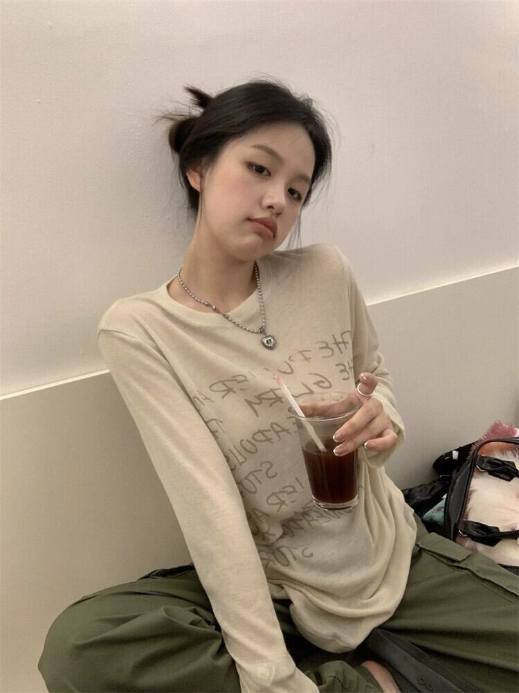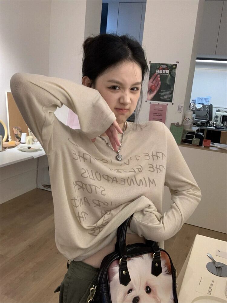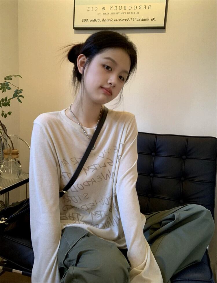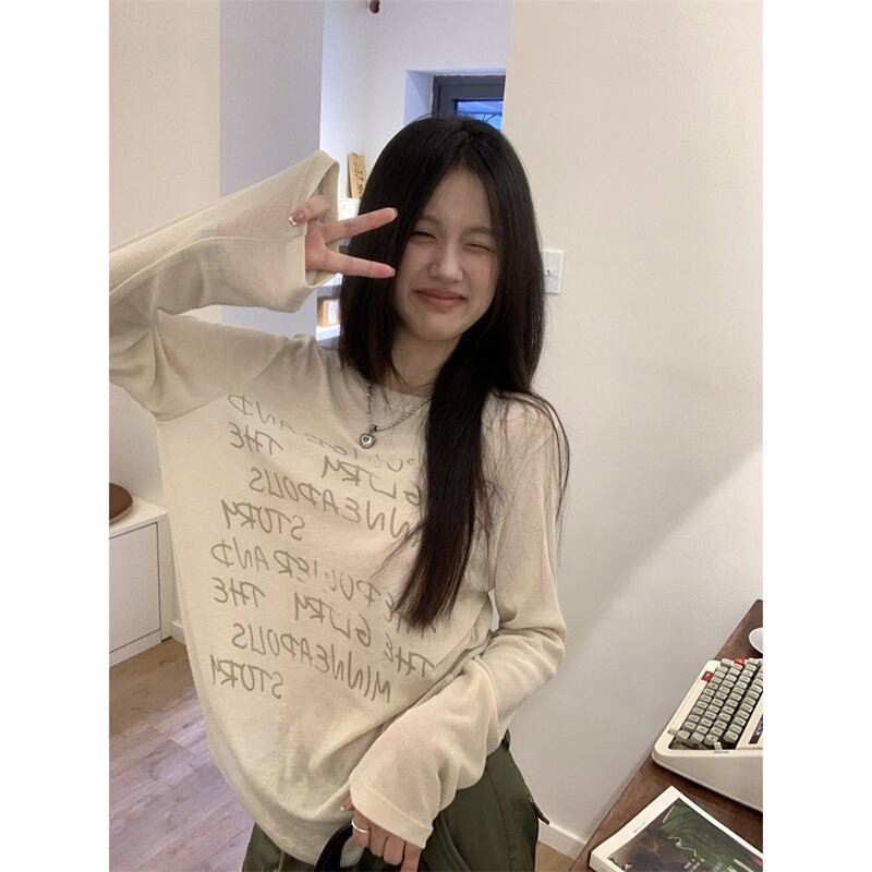2023年初秋の新スタイルのシンプルなレタープリントゆったりと多用途のファッショナブルなショルダーラウンドネック長袖Tシャツレディース ロング オータム 秋物 Oネック missk6338466924