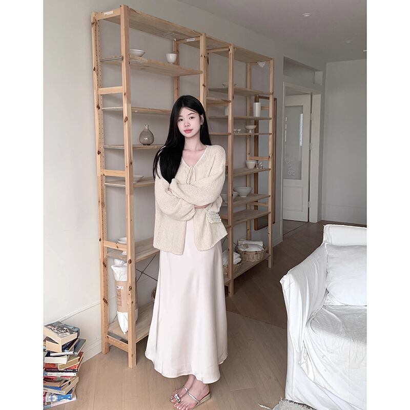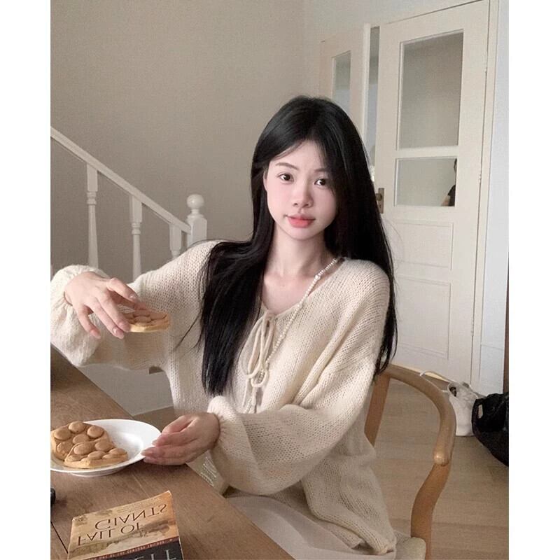 優しいスタイルの V ネック長袖ニットカーディガン女性初秋 2023 新しいスタイルレースアップ多目的痩身ソフトワックストップ ロング オータム 秋物 Vネック missk90498290050