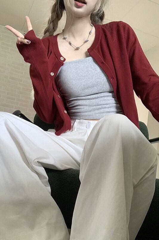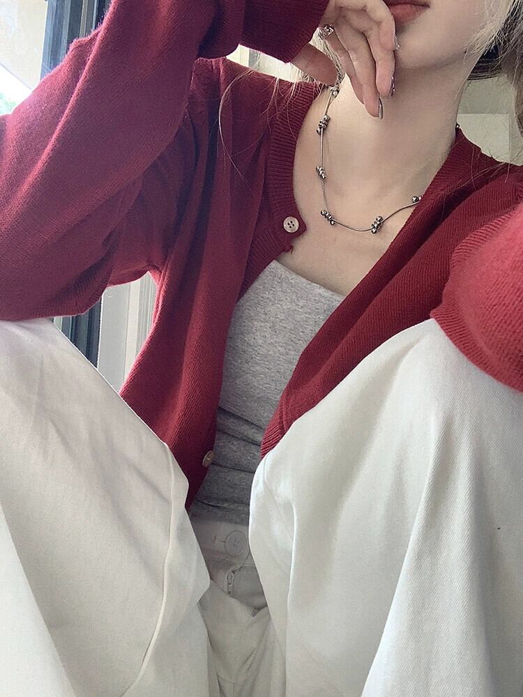 ショート長袖ニットカーディガン女性の秋バージョン2023新しい甘いシングルブレストスリムアウタートップ ロング 大人ガーリー スウィート キュート カジュアル オータム 秋物 missk67160729091