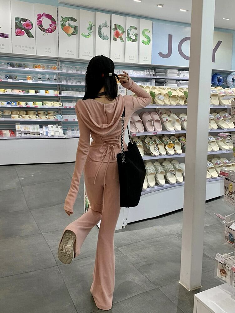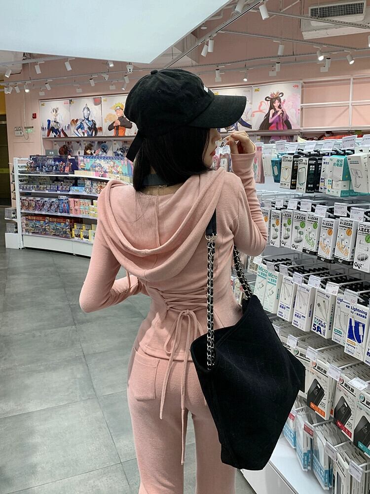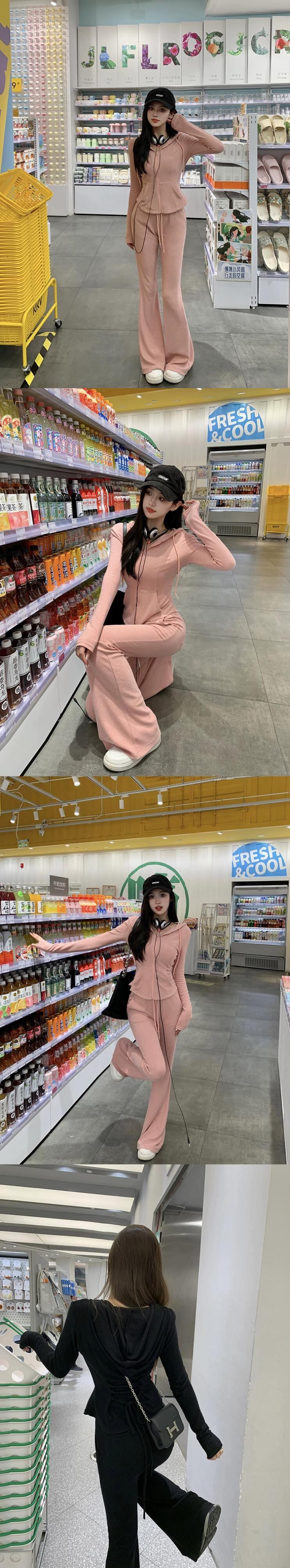 甘くてスパイシーなフード付きスリムフィットフィッシュボーン長袖トレーナーマイクロカジュアルパンツ女性秋 2023 新しいファッションスーツ ロング 大人ガーリー スウィート キュート オータム 秋物 missk23395183162