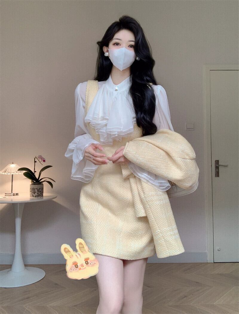 Xiaoxiangfeng ハイエンドチェック柄ベストドレストランペット長袖シャツ女性の秋 2023 新しいファッションスーツ ロング オータム 秋物 missk39263286079