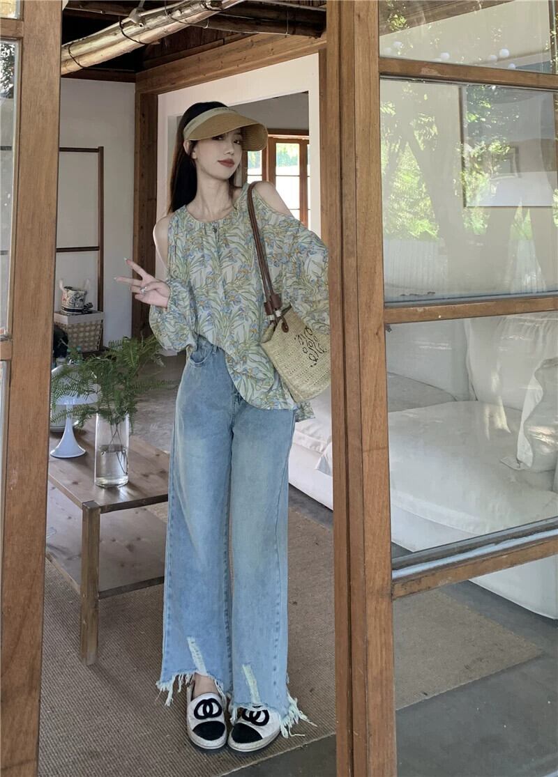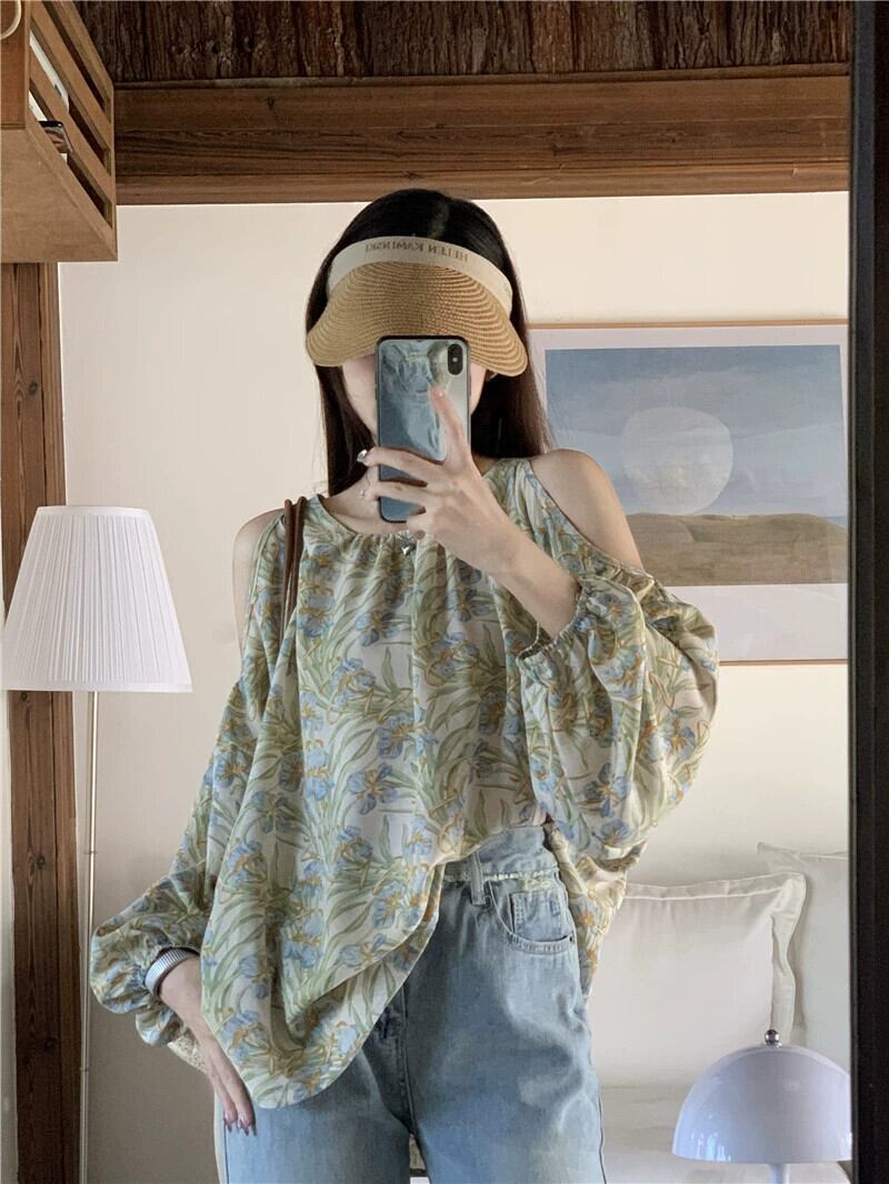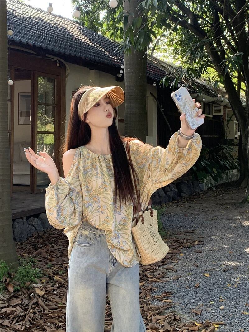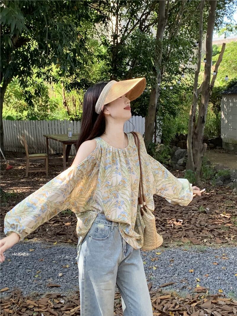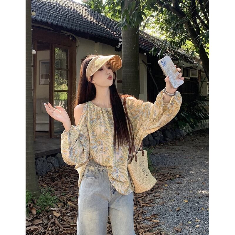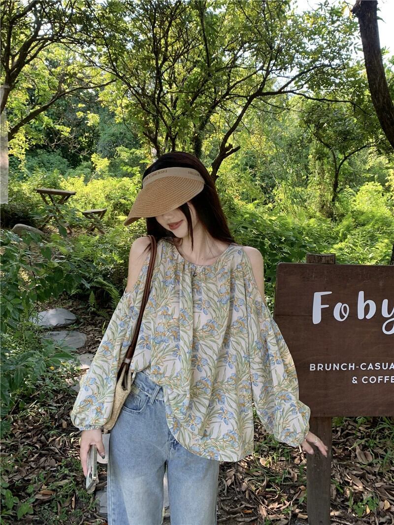 中空オフショルダー長袖日焼け止めシャツ女性秋 2023 新しいファッションデザイン薄い花柄トップ ロング オータム 秋物 missk83269948497