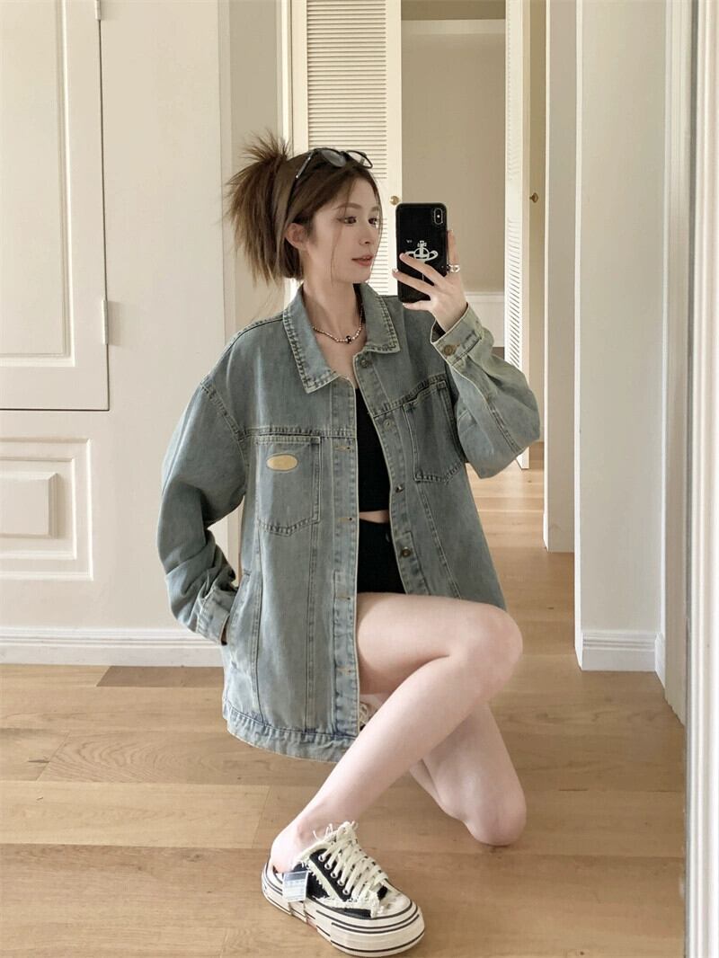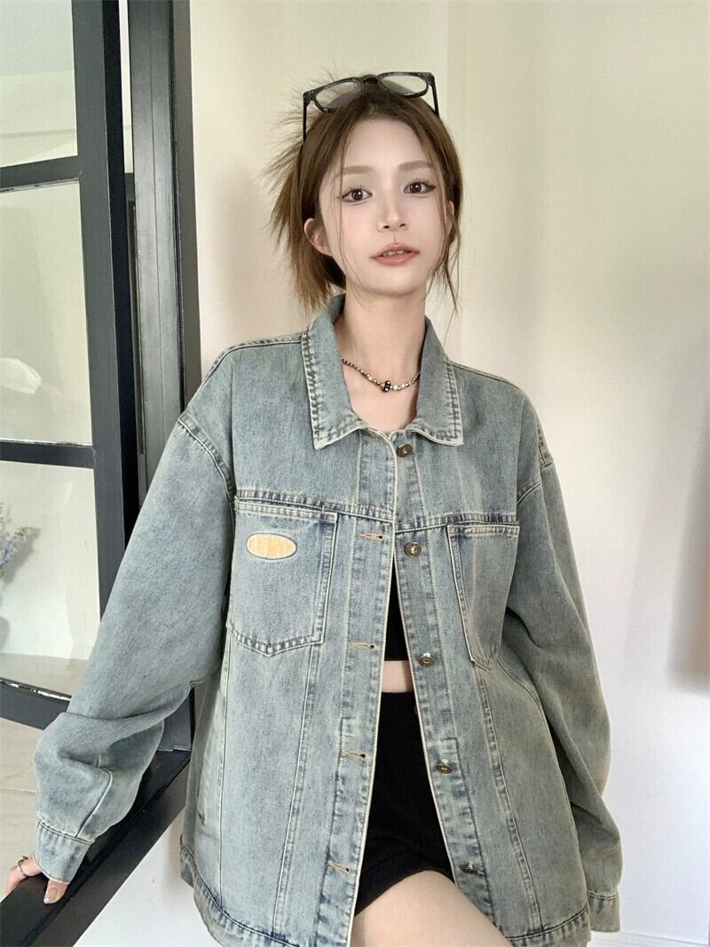 レトロ多用途長袖デニムジャケットの女性の秋 2023 新しいスタイルの小さなハイエンドの緩い気質トレンディなトップ ロング オータム 秋物 missk54900624494