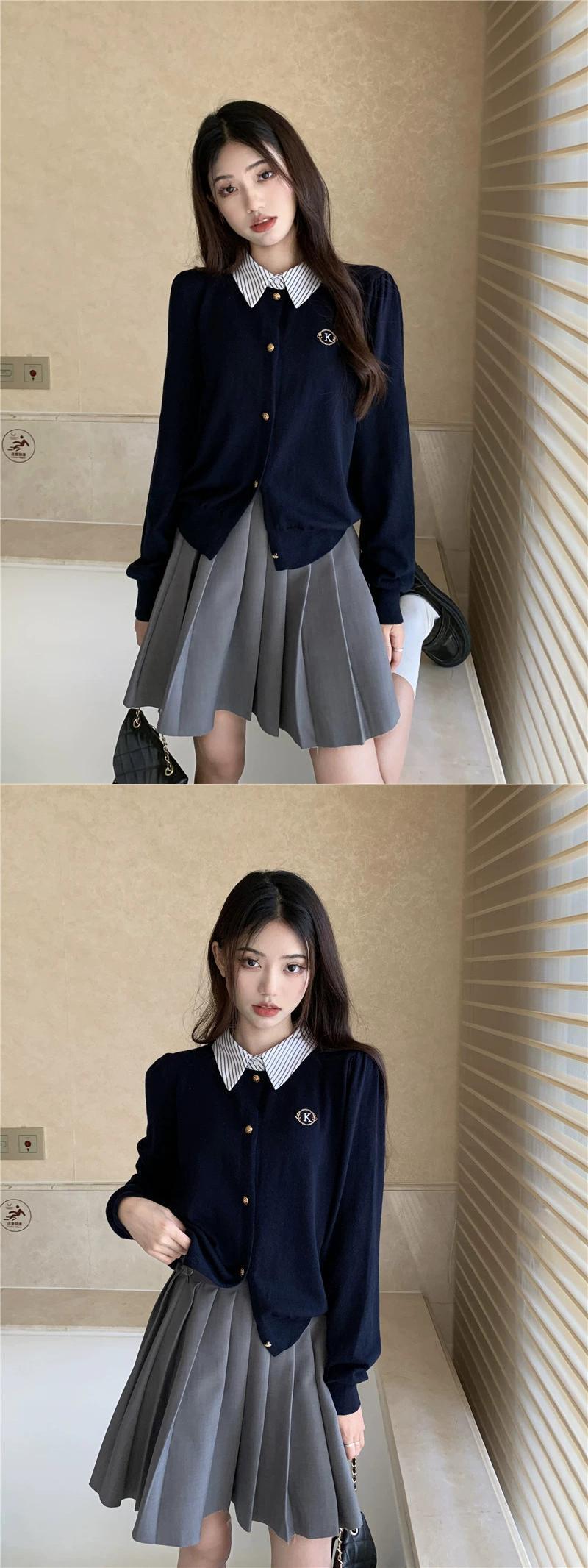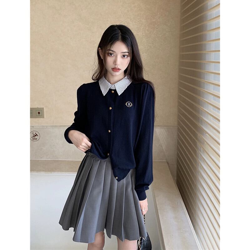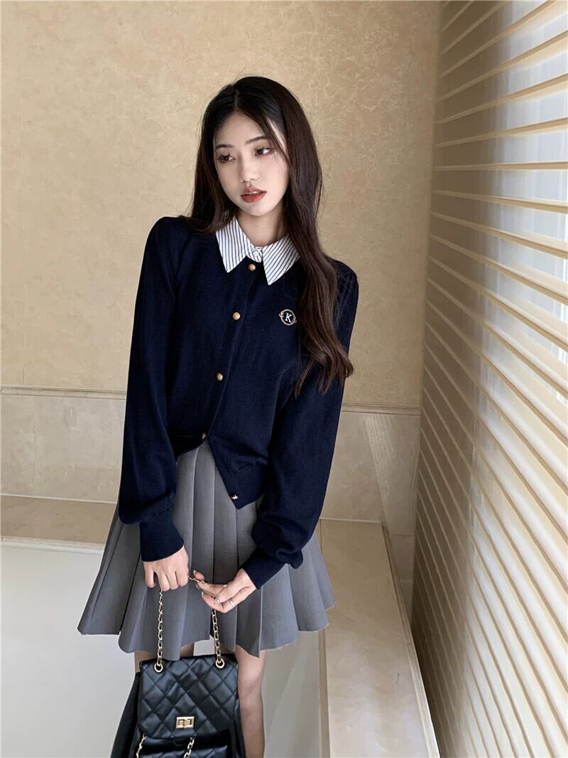スタイル長袖セーター女性の秋 2023 新デザインポロカラーステッチ刺繍レタートップ ロング レッド オータム 秋物 missk771444175