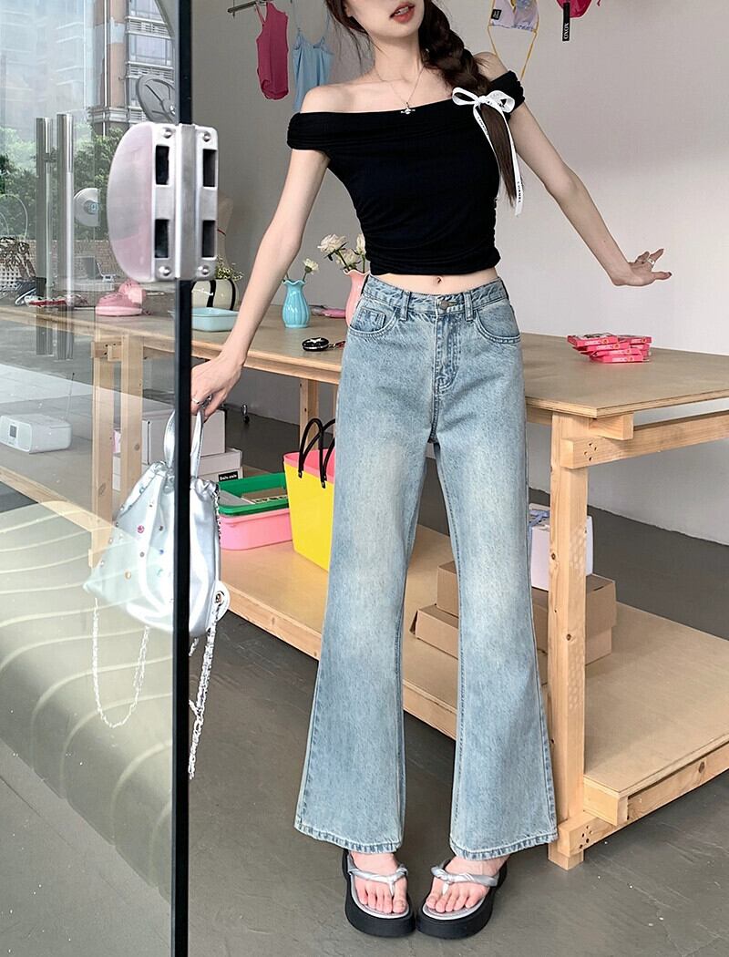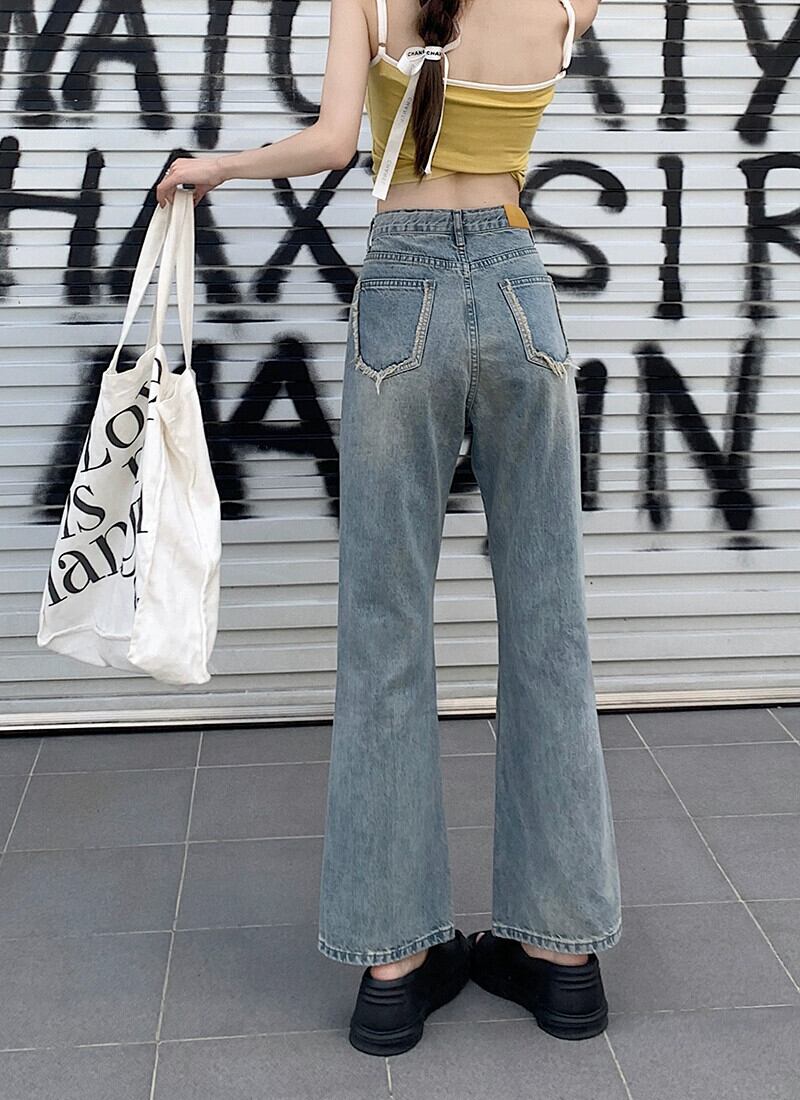 マイクロブーツジーンズ女性 2023 秋の新しいレトロハイウエストスリムローエッジデザインフレアパンツ多用途パンツ レッド オータム 秋物 missk26611065489