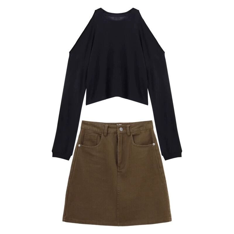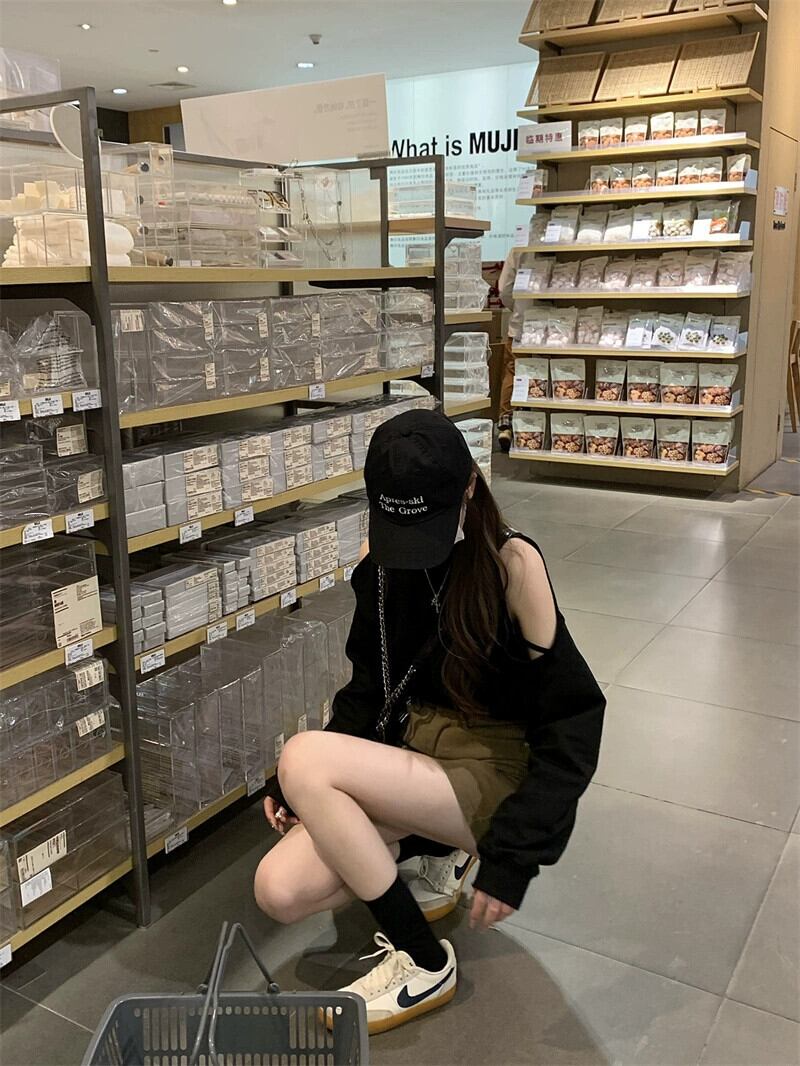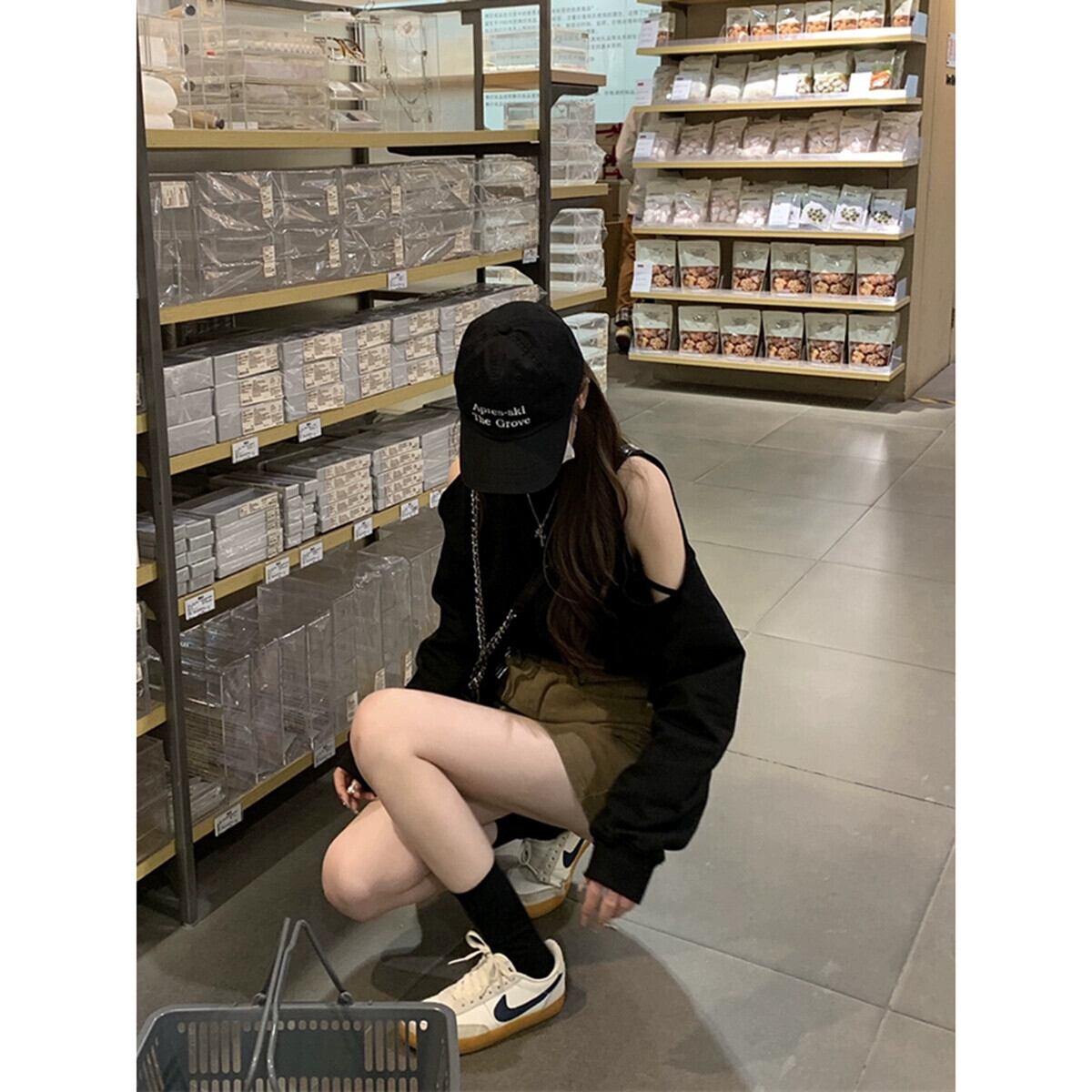 気質オフショルダー長袖スウェットシャツ秋 2023 新しいファッションニッチブラックシックなトップス女性イン ロング オータム 秋物 missk38191643569