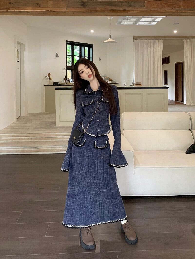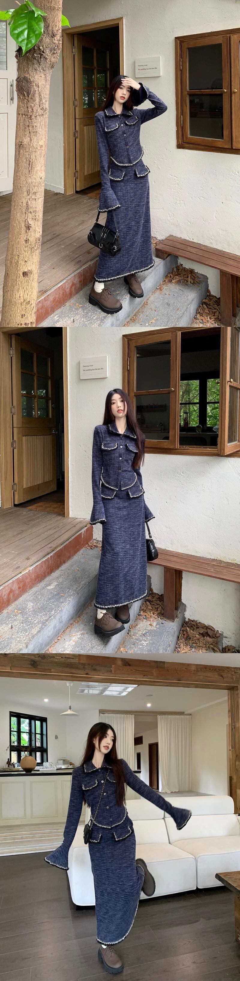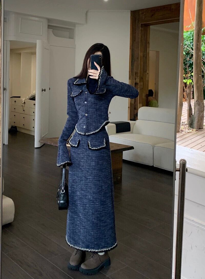 フランスのハイエンドウエスト痩身トランペット長袖ジャケットロングスカート女性秋 2023 新しい 2 点セット オータム 秋物 missk35695994730