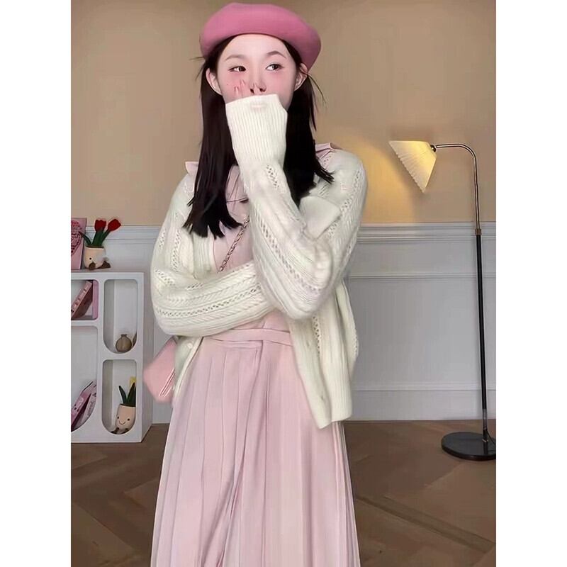 甘いスタイルの長袖セーターカーディガンデザイン年齢を軽減するプリーツドレスの女性の新しい秋のファッションスーツ ロング 大人ガーリー スウィート キュート カジュアル オータム 秋物 missk53181116173