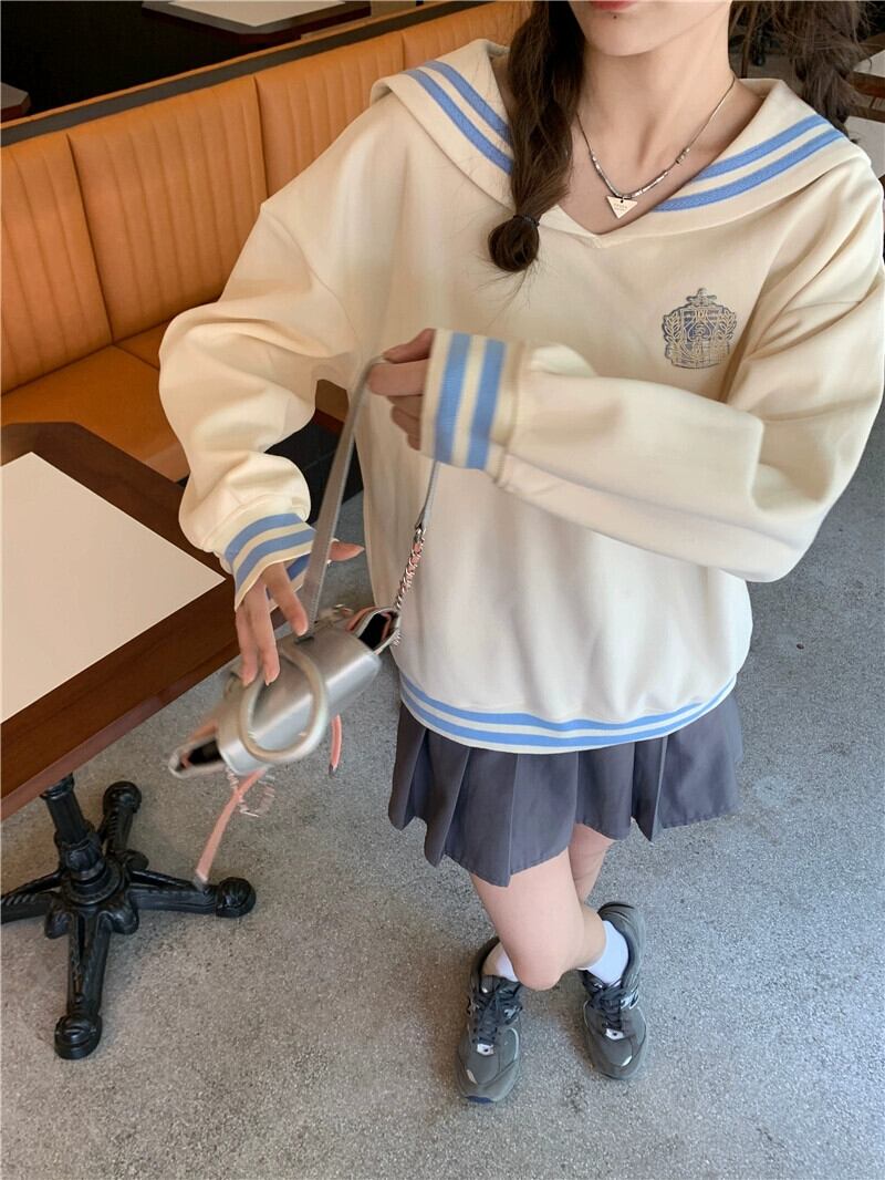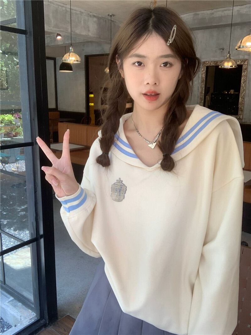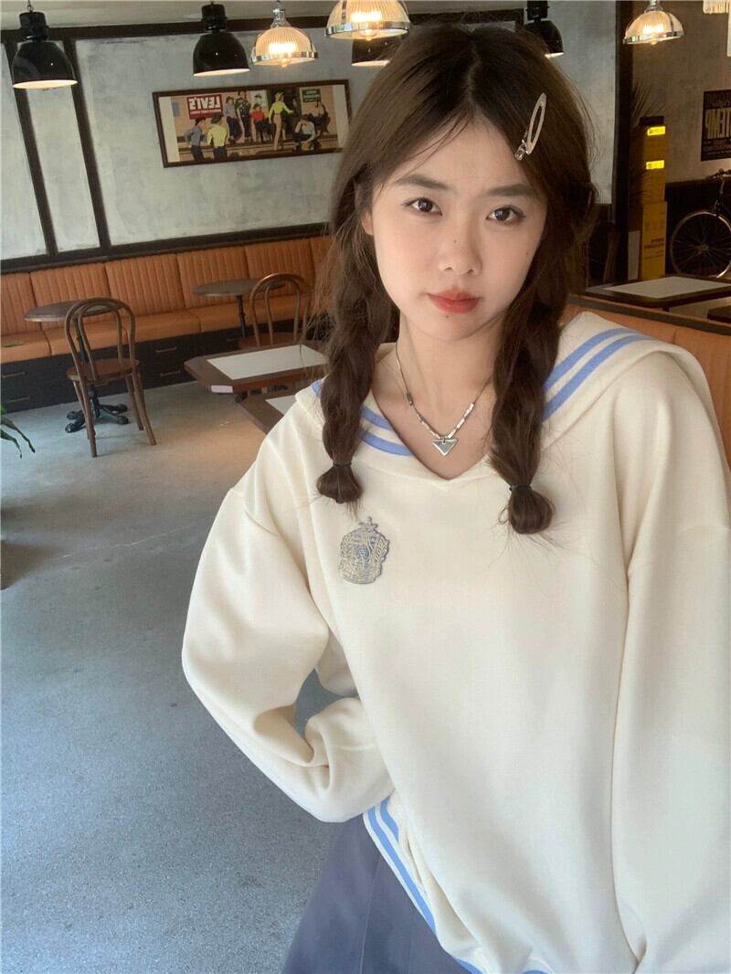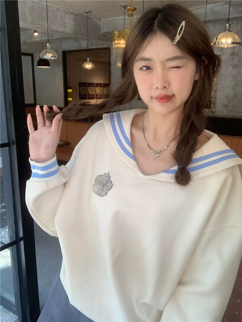 2023 秋新規購入甘いスタイルルーズファッション多用途コントラストカラーネイビーカラー長袖スウェットシャツ年齢を減らすトップス女性 ロング 大人ガーリー スウィート キュート カジュアル オータム 秋物 missk66639937972