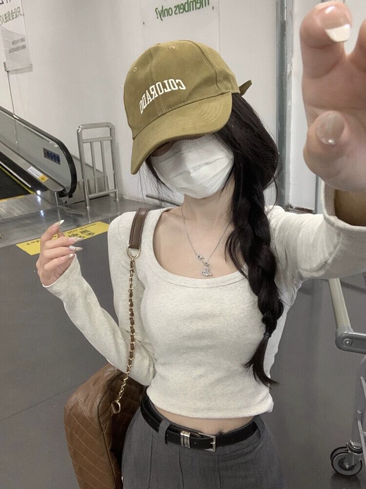 Uネックベーシック万能長袖Tシャツ2023年秋新バージョンスリミングショートソリッドカラーボトムストップレディース ロング オータム 秋物 missk64983753068