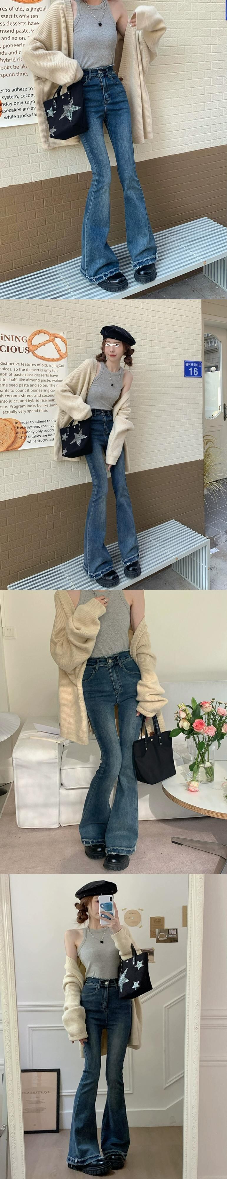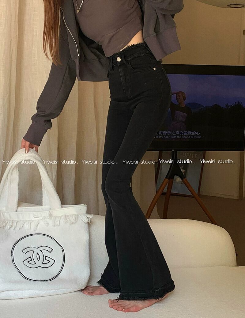 ブラック ブーツカット ジーンズ レディース、秋、スタイル、2023 新しいスタイル、ハイウエスト、スリミング、伸縮性のあるローエッジ デザイン パンツ、トレンディ オータム 秋物 missk13844867949
