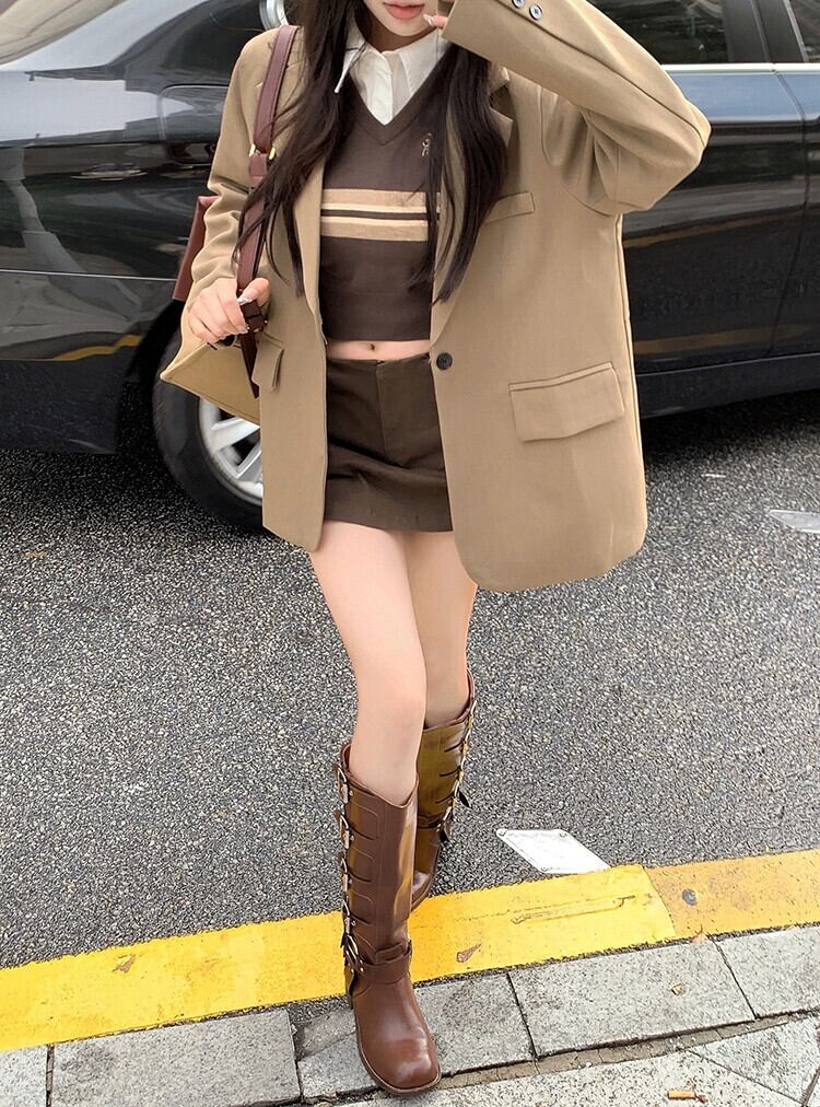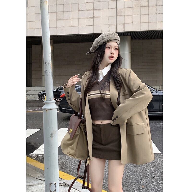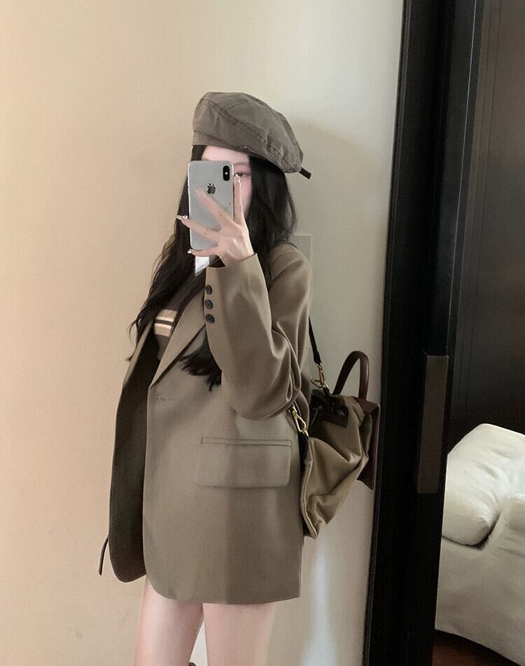 -end 長袖スーツジャケット女性 2023 秋の新しいカレッジスタイルラペルルーズミッドレングスカジュアルトップ ロング オータム 秋物 missk78928440842