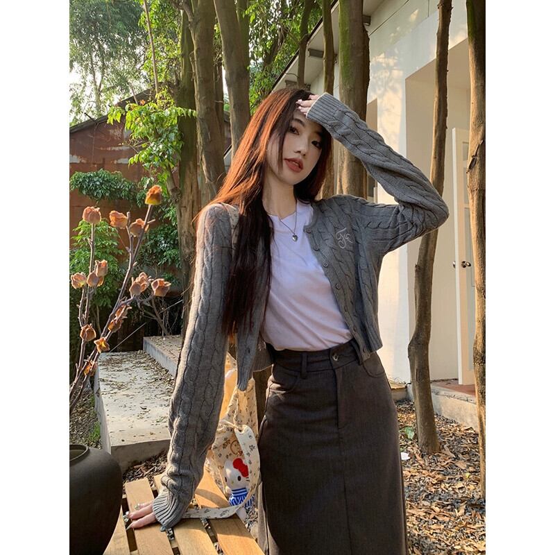 ソフトワックス刺繍ツイスト長袖ニットカーディガン底 Tシャツスカート女性秋 2023 新しいファッションスーツ ロング レッド オータム 秋物 missk1602201090