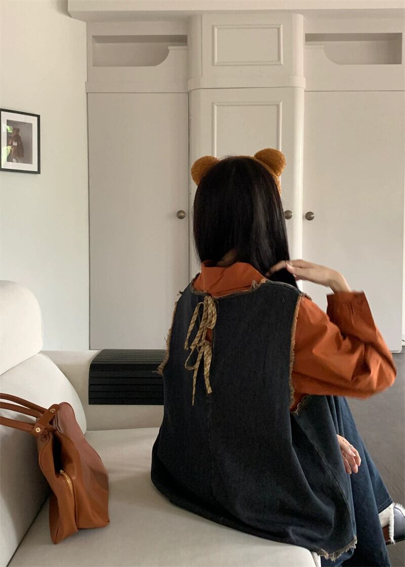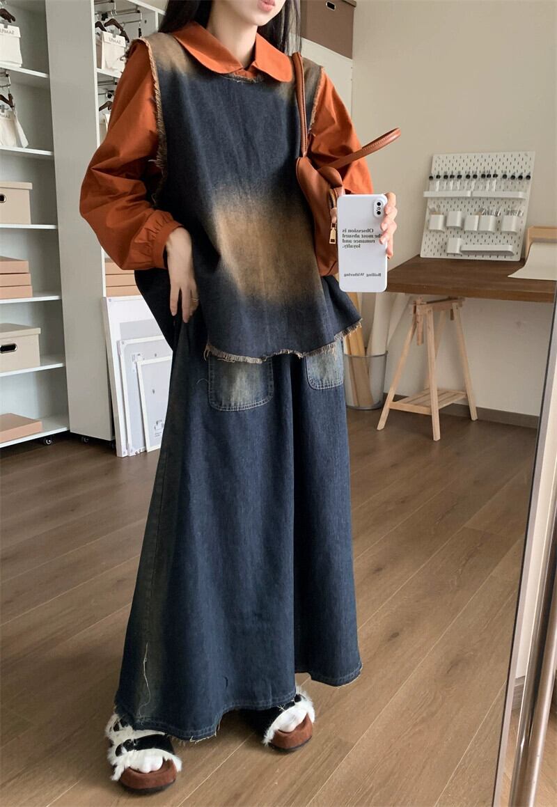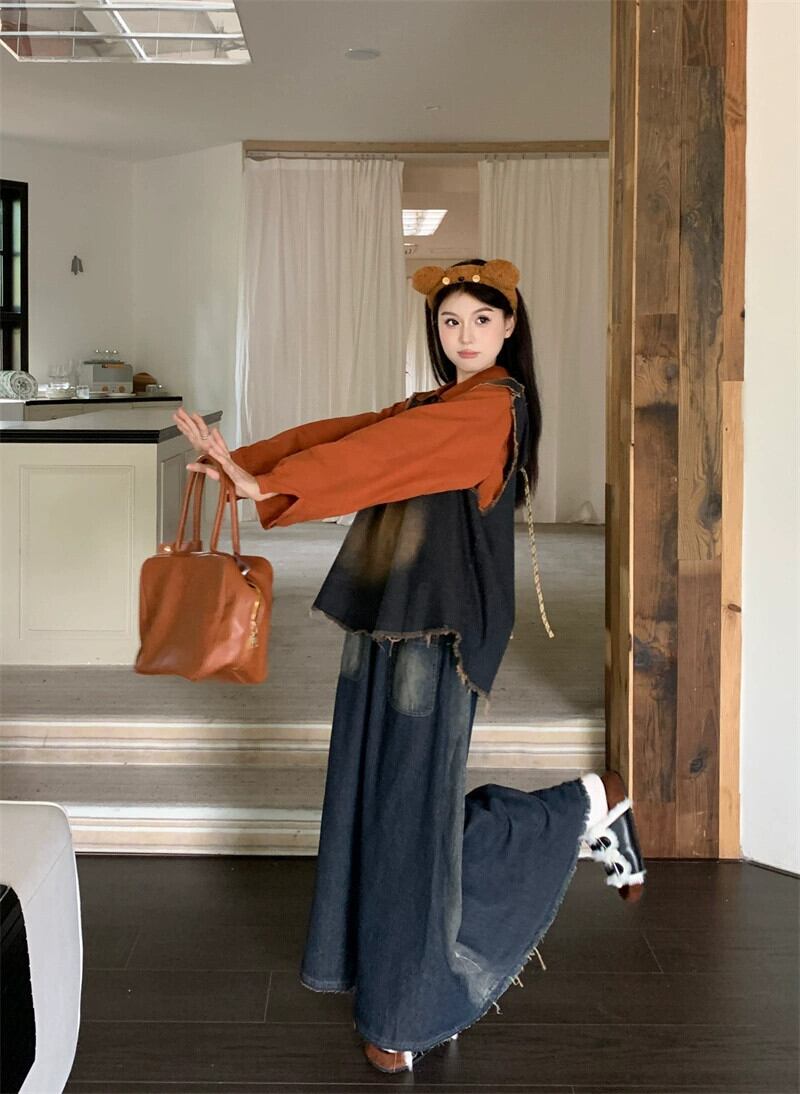 不規則なデザインのレトロなレースアップデニムベストスカート長袖シャツ女性の 2023 秋の新しいスーツ ロング オータム 秋物 missk11205794577