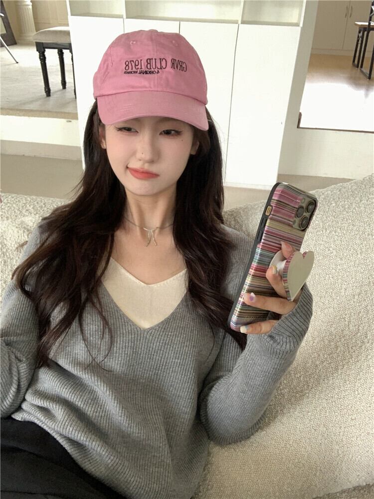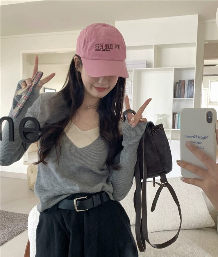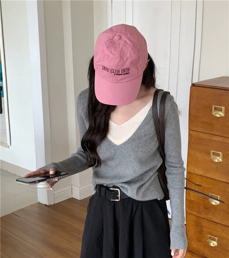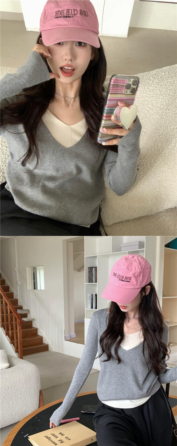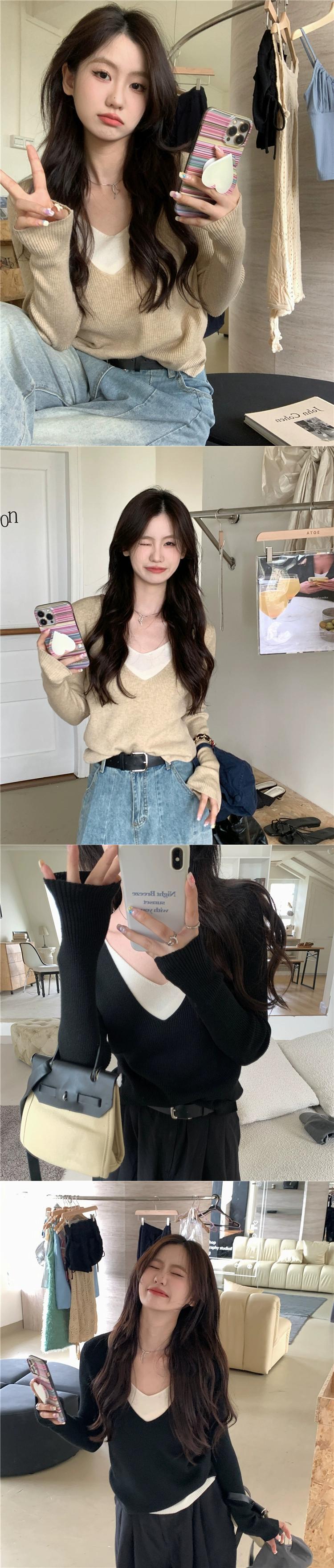 偽ツーピース V ネック長袖セーター女性秋バージョン 2023 新しいスリムフィットインナーウェアアウタートップイン ロング オータム 秋物 Vネック missk80406715113