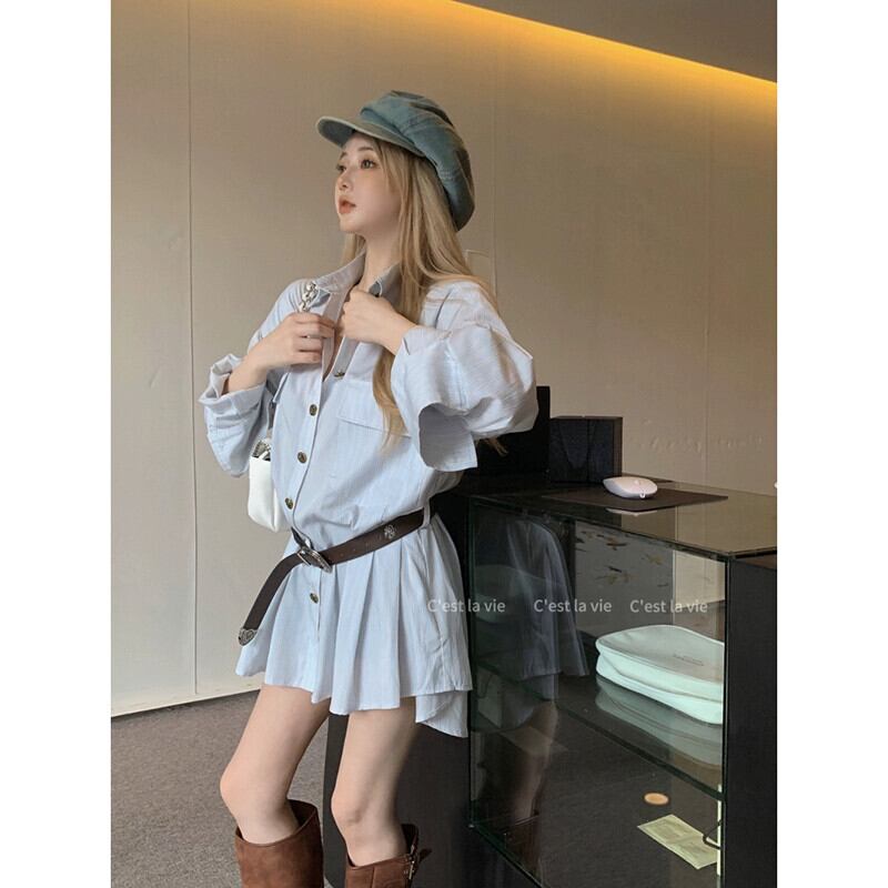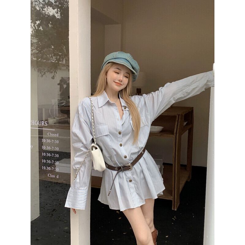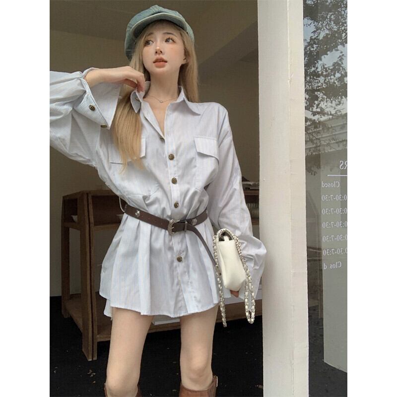 Youayousha ドレス女性の 2023 秋の新デザインウエスト痩身スタイル長袖シャツドレス ロング オータム 秋物 missk14277913709