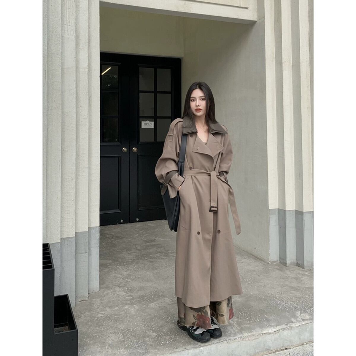 -エンド取り外し可能な二層レザーカラーウインドブレーカージャケット秋の新しい英国スタイルのロング膝上コート女性 オータム 秋物 missk92771926180