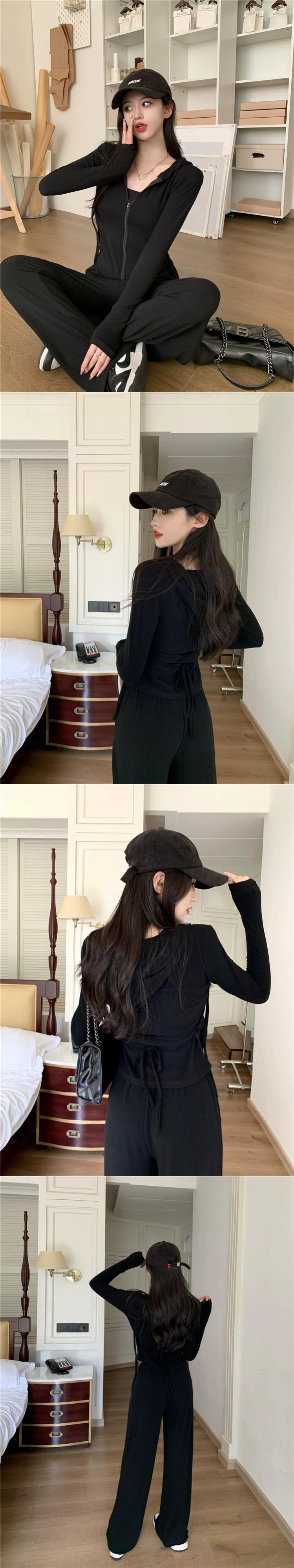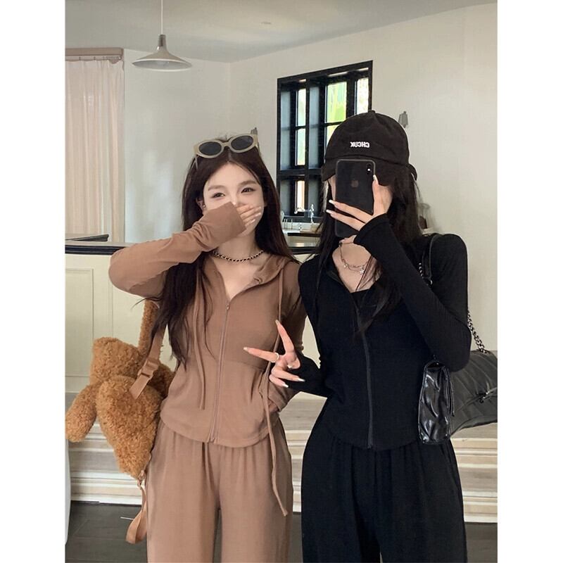 フード付きレースアップスリム長袖トレーナージャケットワイドレッグパンツ女性秋 2023 新しいファッション 2 点セット ロング オータム 秋物 missk6317612518