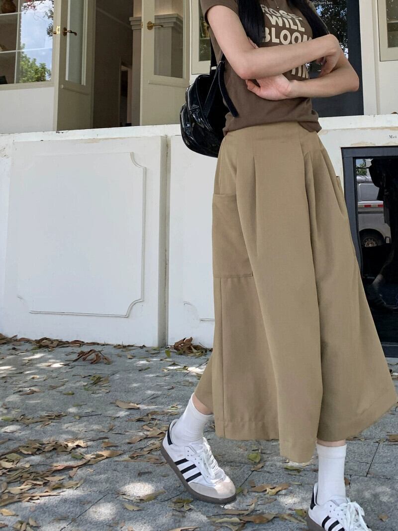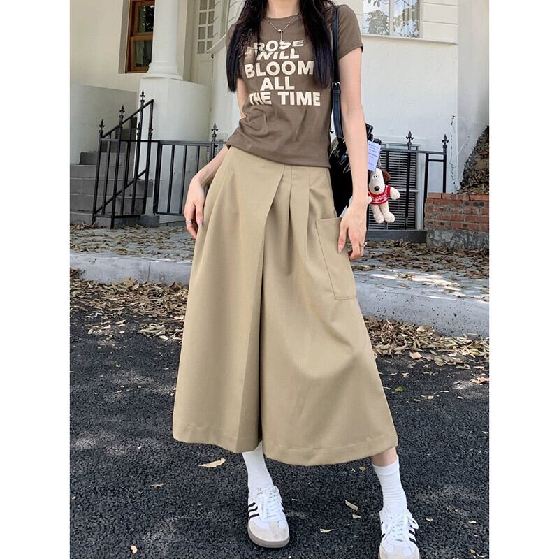 弾性ウエストキュロット女性秋バージョン 2023 新しいハイウエストスリム作業着デザインワイドレッグ 8 点カジュアルパンツ ハイウェスト エラスティック 伸縮 オータム 秋物 ワイドパンツ missk15863641629