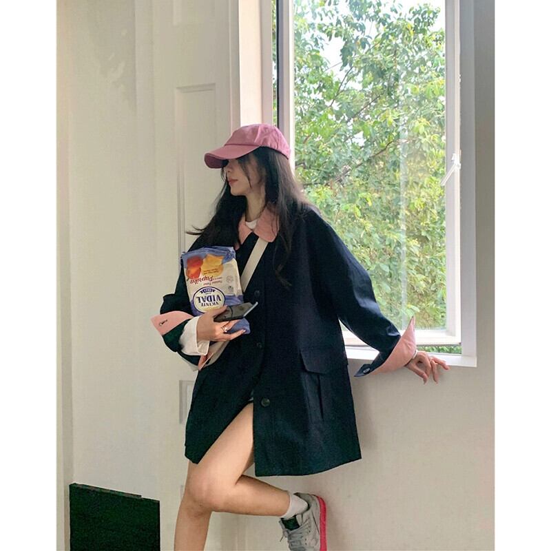 コントラストカラースプライシング長袖ウインドブレーカージャケット女性秋バージョン 2023 新しいスタイルの小さなデザイン作業服トップトレンディ ロング オータム 秋物 missk38230265212