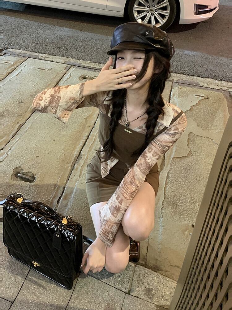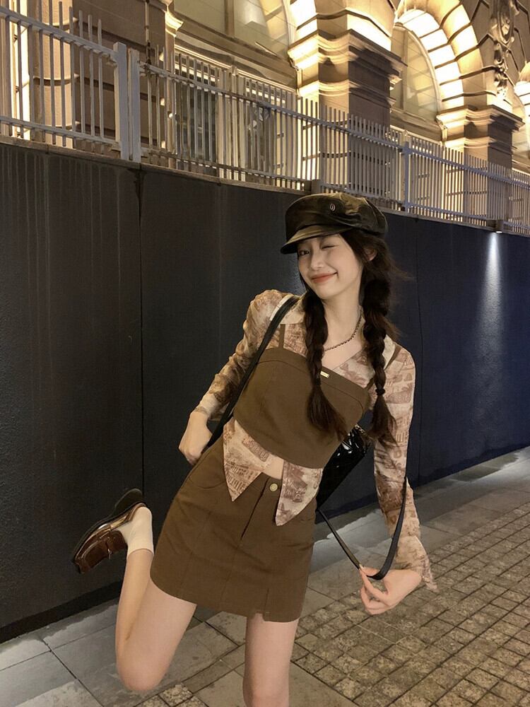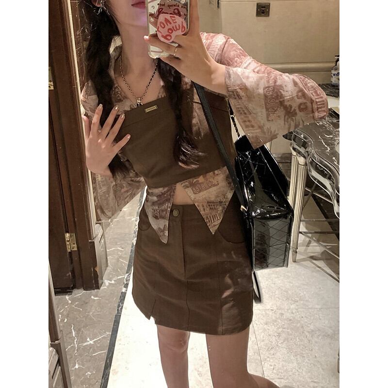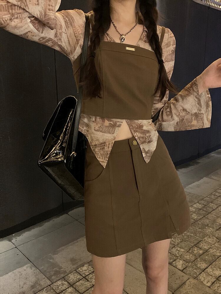 タイダイデザインベルスリーブシャツチューブトップキャミソールスカート女性の秋の 2023 新しいファッションスーツ オータム 秋物 missk23537866609