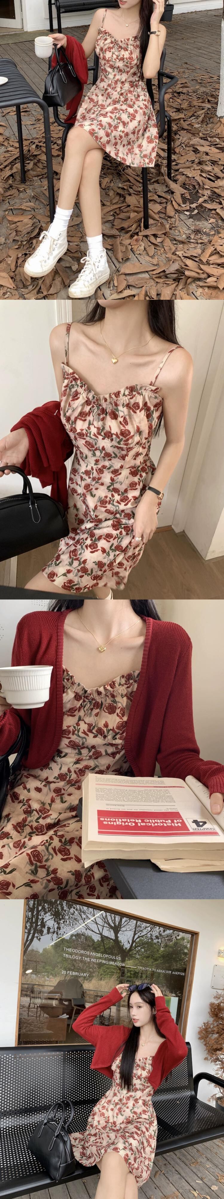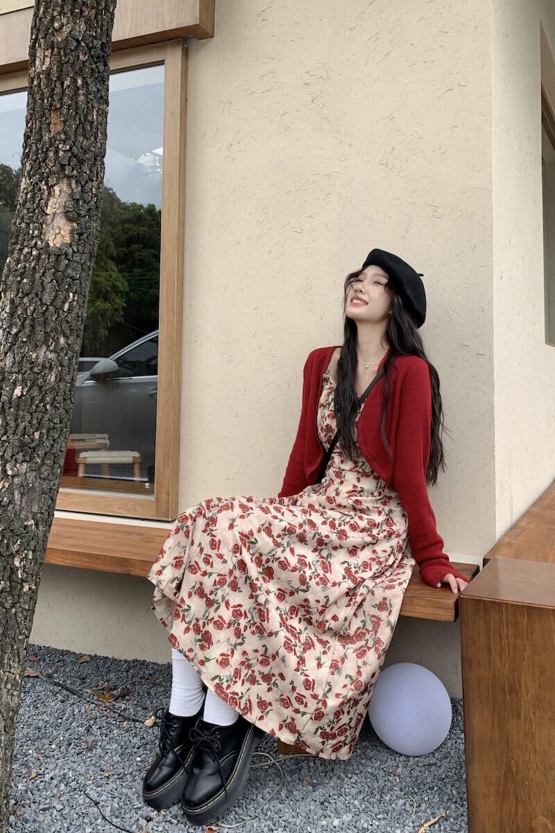 色:フローラルスカートロング,フローラルスカートショート,赤いニット