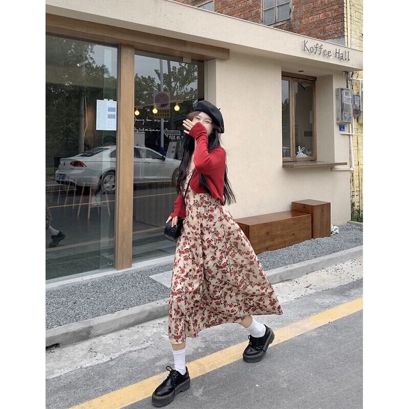 コーデュロイぶら下げドレスの女性秋 2023 新しい甘い花柄ウエスト痩身ミッドレングス A ライン底スカート 大人ガーリー スウィート キュート カジュアル オータム 秋物 Aライン missk45060502856