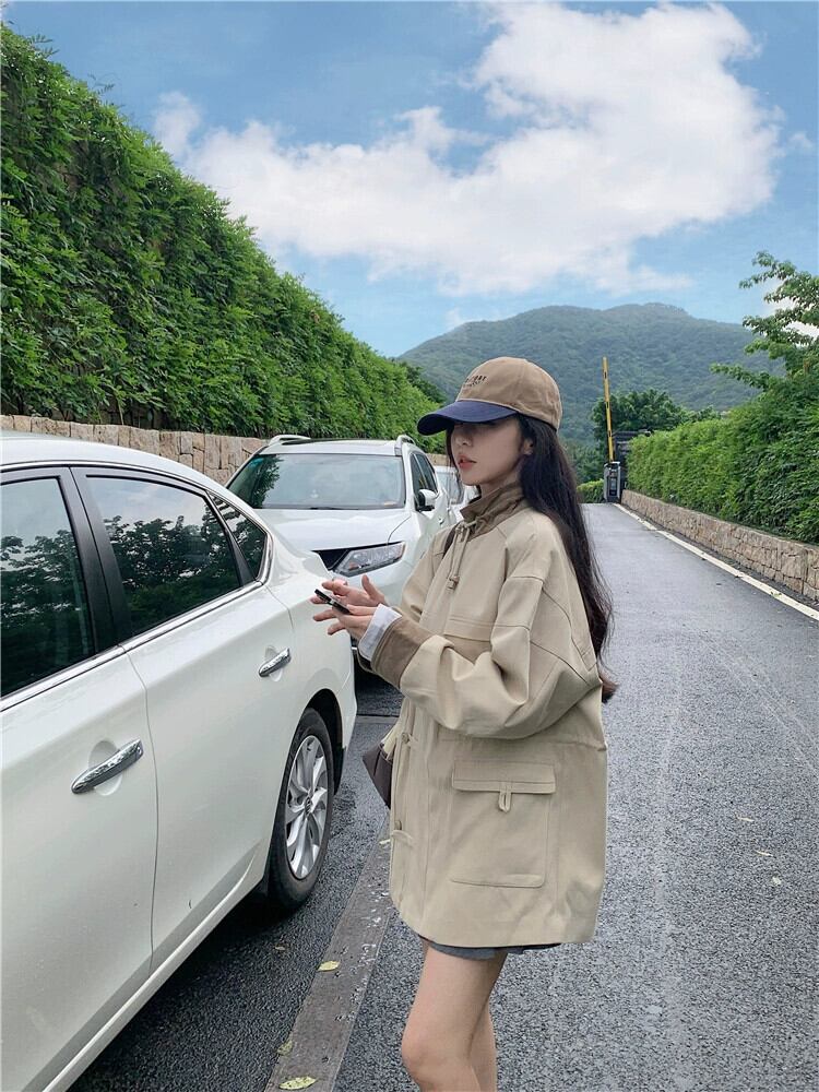 コントラストカラーデザイン長袖ウインドブレーカー女性の秋バージョン 2023 新しい小さいショートスタイルストリートファッションジャケット ロング オータム 秋物 missk99662325346