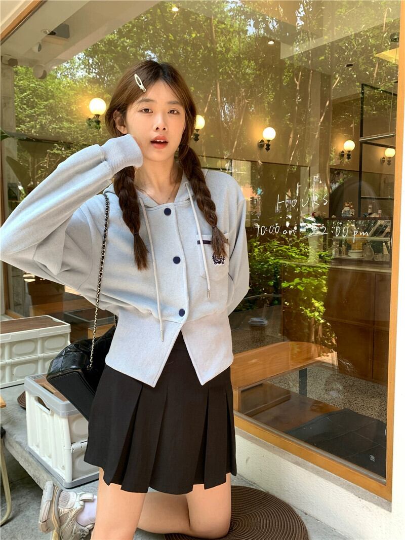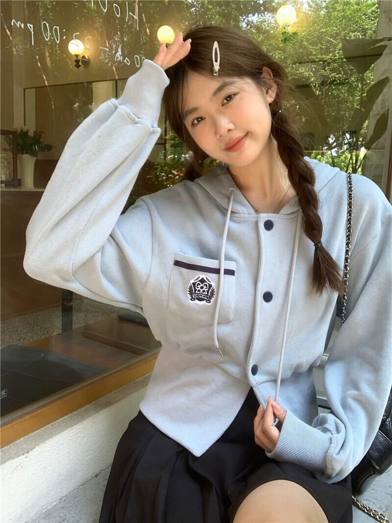 フード付き刺繍長袖スウェットシャツの女性の秋の新しいスタイルスポーツスタイルウエストショートスタイルカーディガントップトレンディ ロング レッド オータム 秋物 missk59732074954
