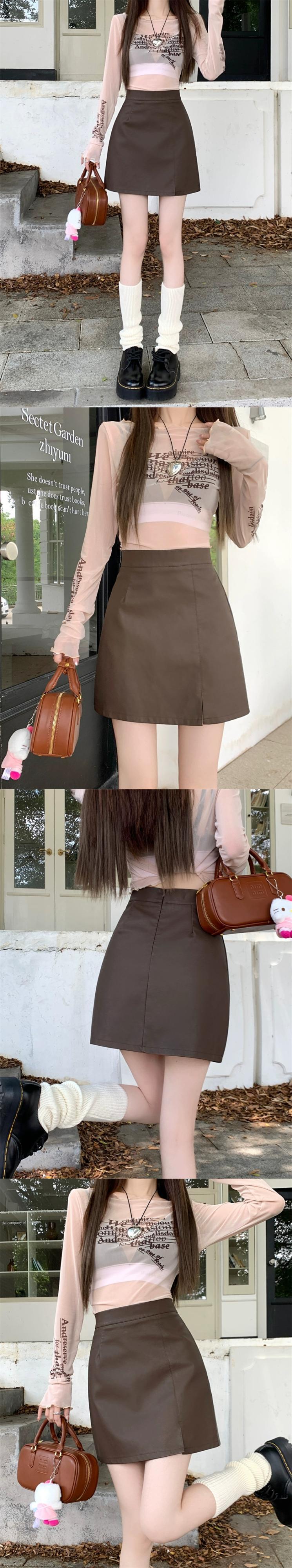 Pu レザースカート女性秋バージョン 2023 新しい黒ハイウエストスリム A ラインショートスカートヒップカバースカート ハイウェスト ブラック オータム 秋物 Aライン missk21190309660