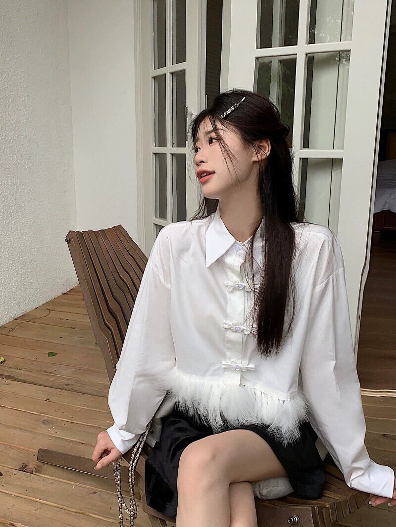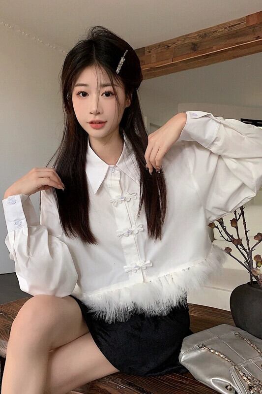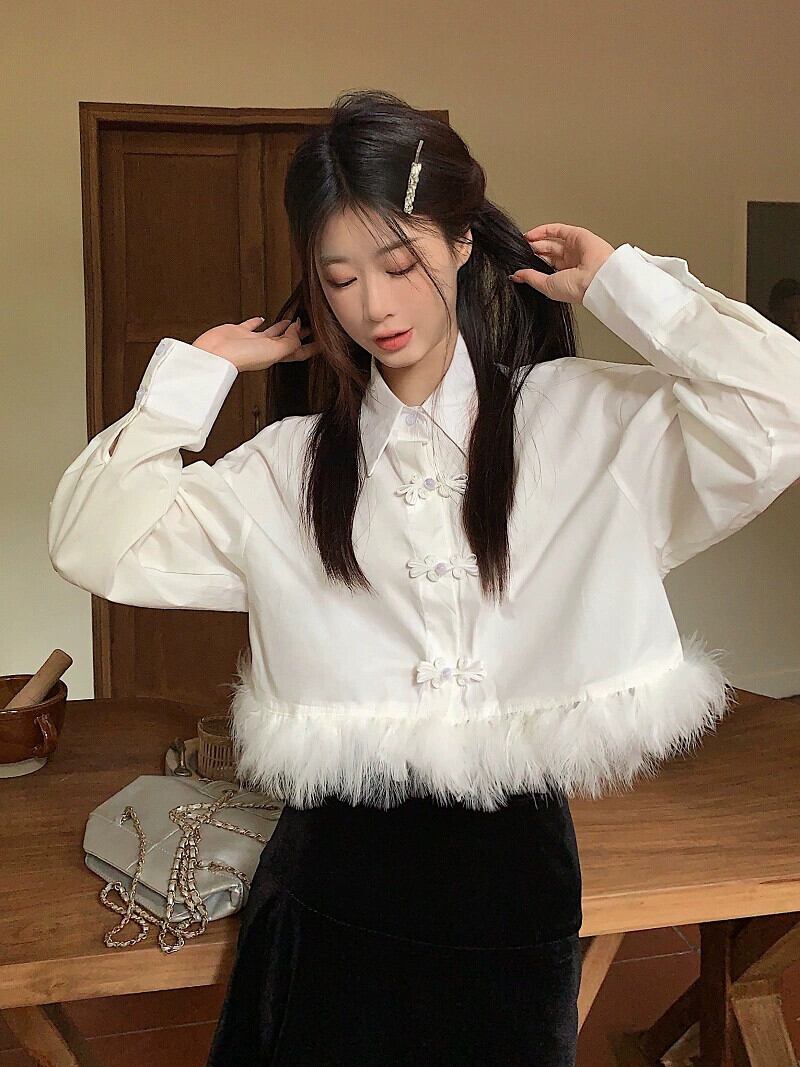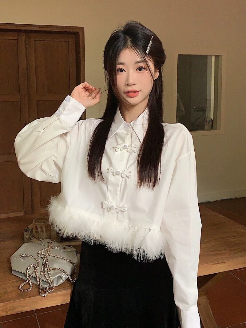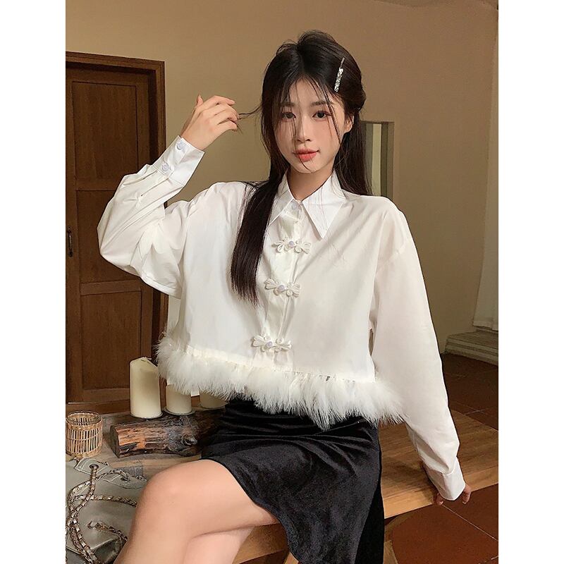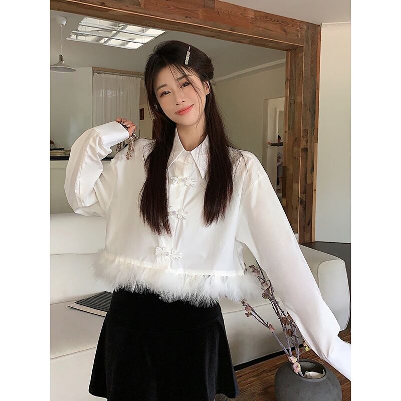 フランスのスーパーフェアリーデザイン長袖シャツ女性秋 2023 新しいスタイルの毛皮のようなスプライシングショートルーズでシックなトップ ロング オータム 秋物 missk93552127154