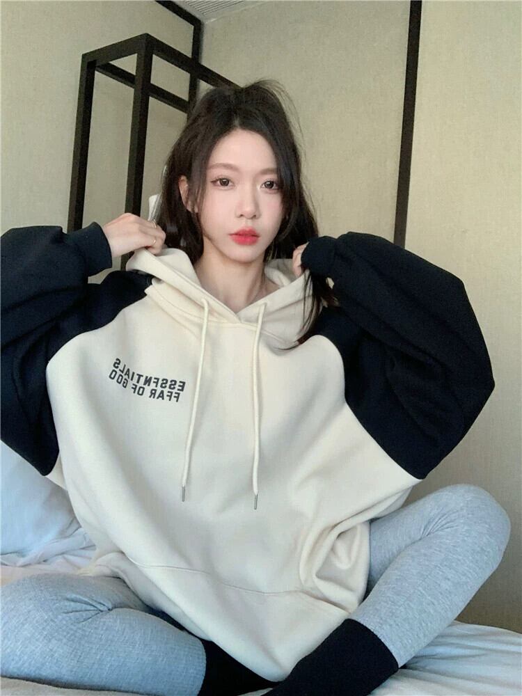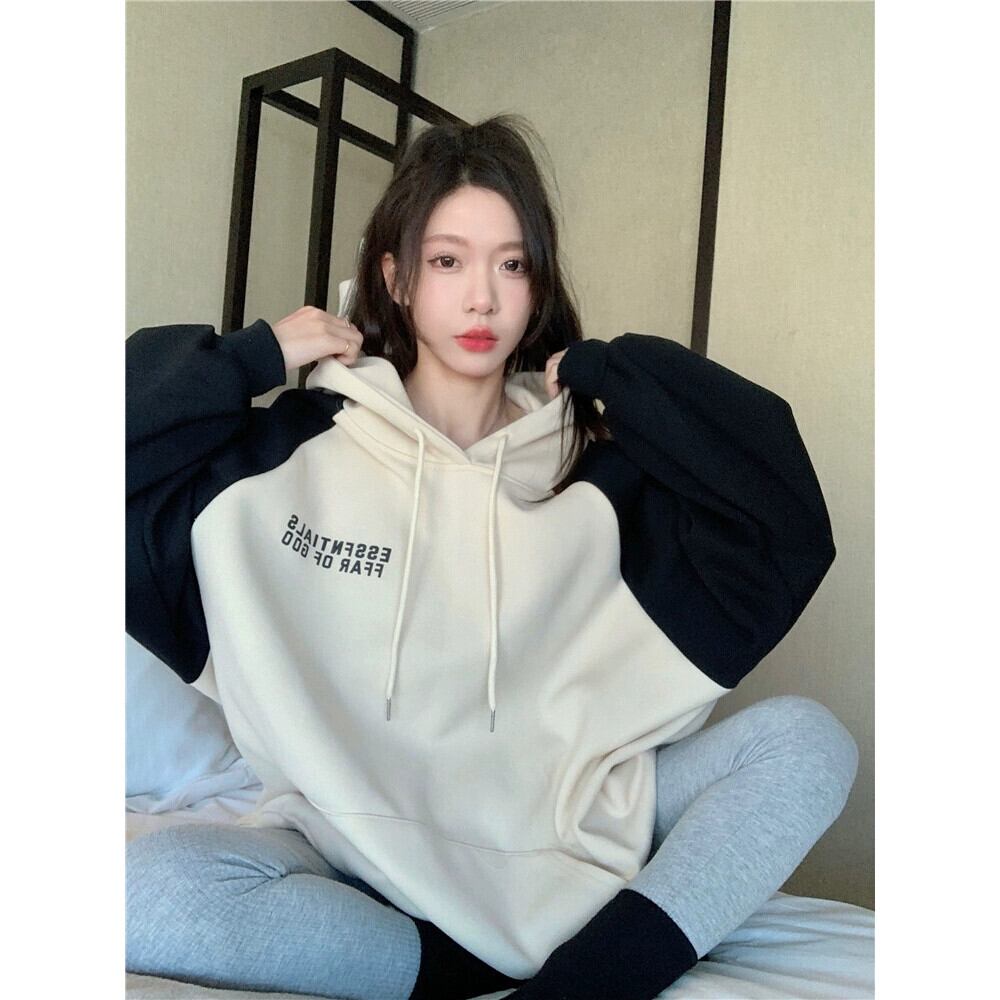 レイジー ラグラン スリーブ セーター レディース 秋スタイル コントラスト カラー フード付き ミドル丈 トップ シック オータム 秋物 missk41122971451
