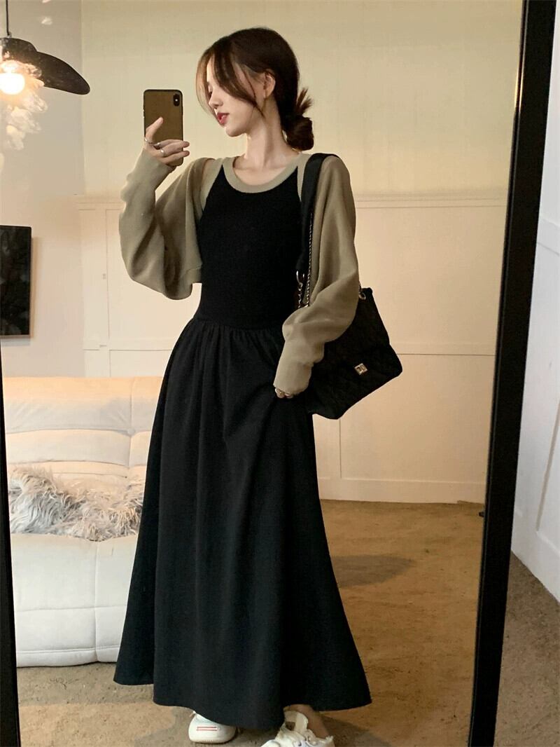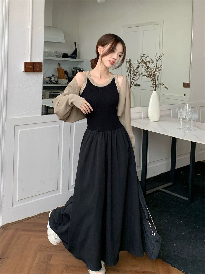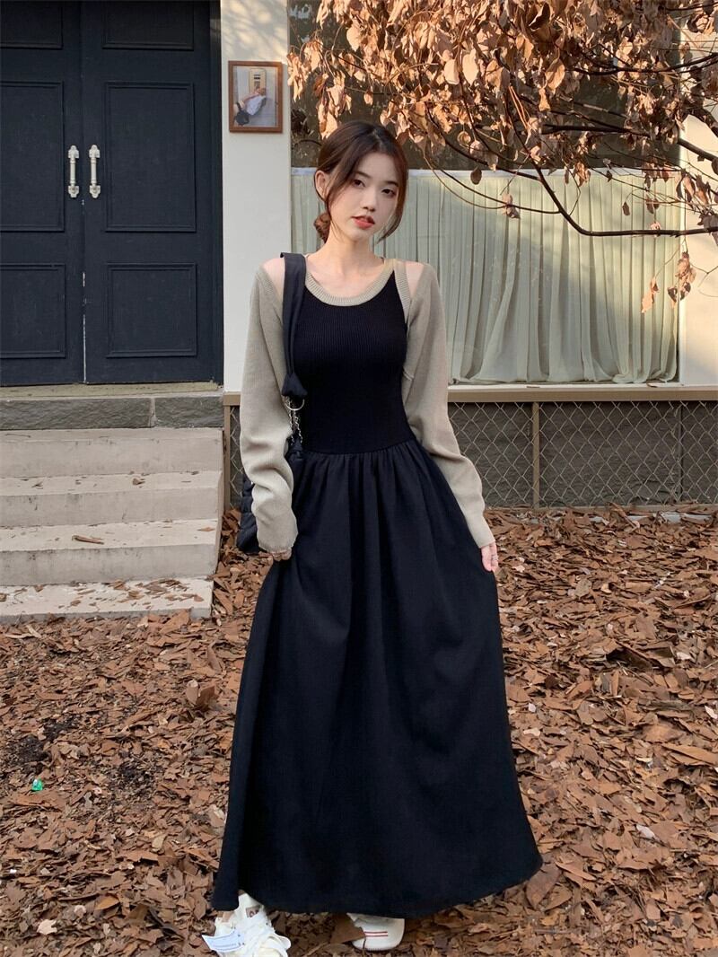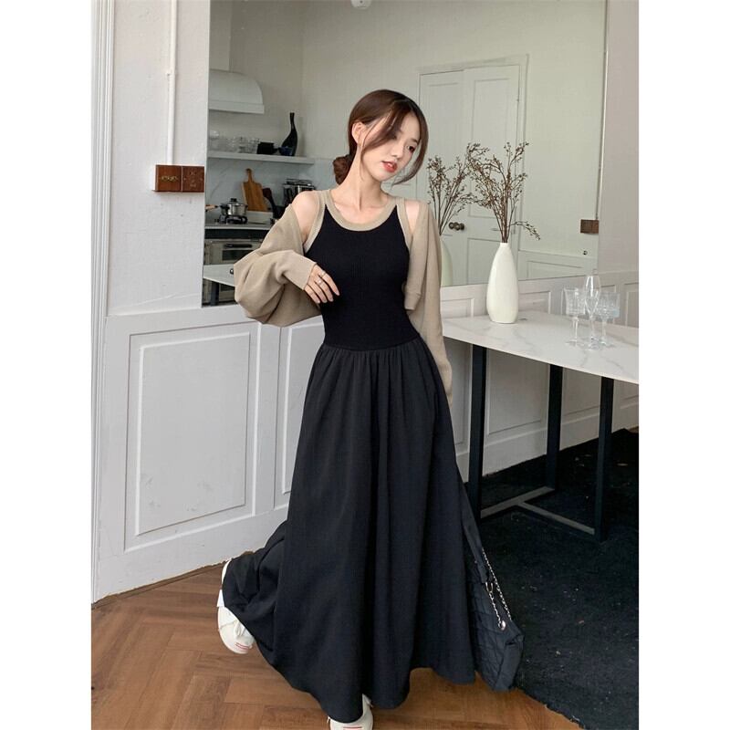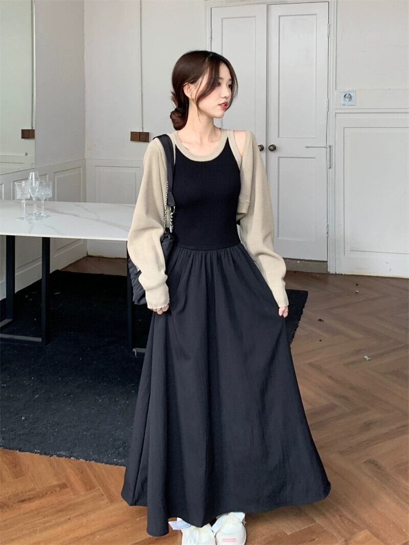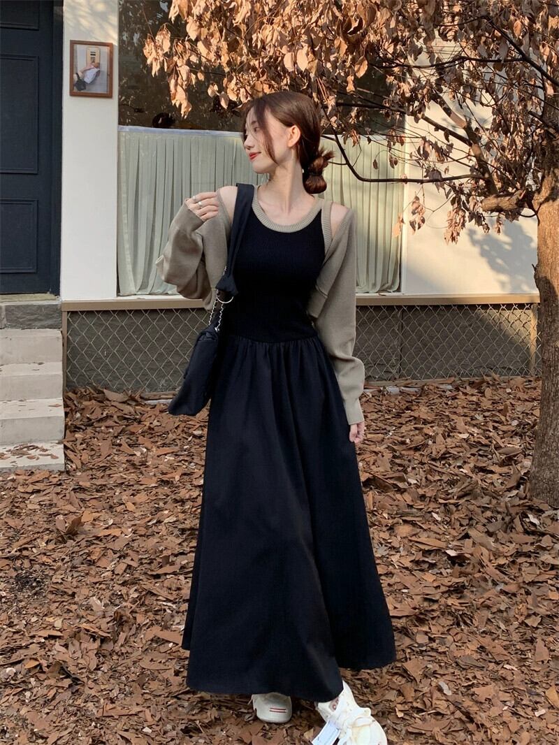フランスのハイエンドニットスプライシングノースリーブドレス長袖ショールジャケット女性秋 2023 新しいツーピースセット ロング オータム 秋物 missk66903580718