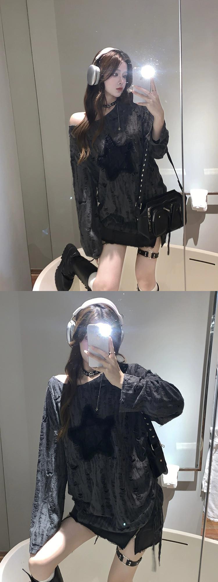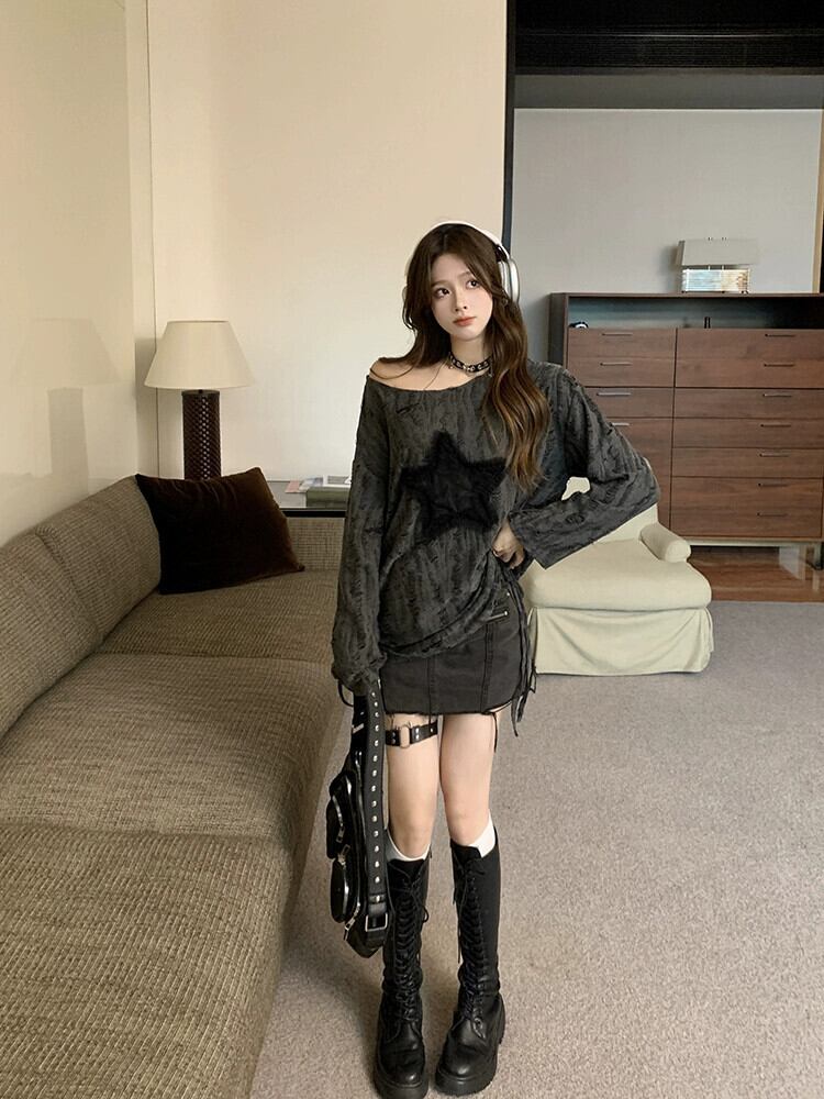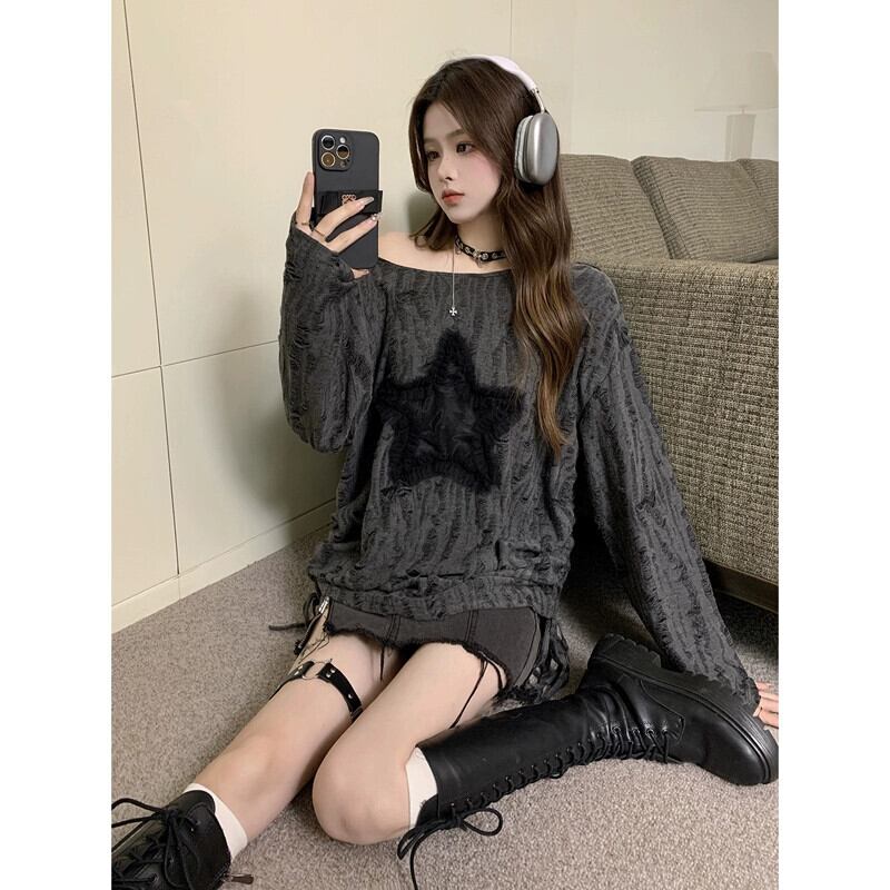 リップドスター長袖 Tシャツ女性秋 2023 新しいアメリカンデザイン怠惰なスタイルルーズミッドレングストップ ロング オータム 秋物 missk31246721171