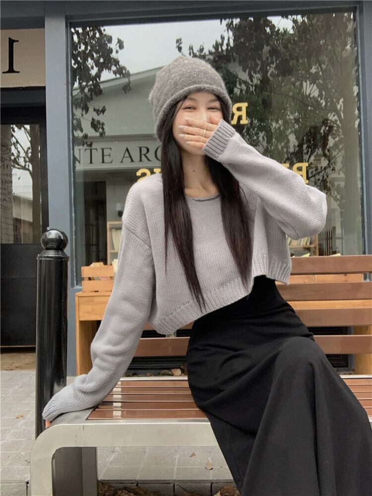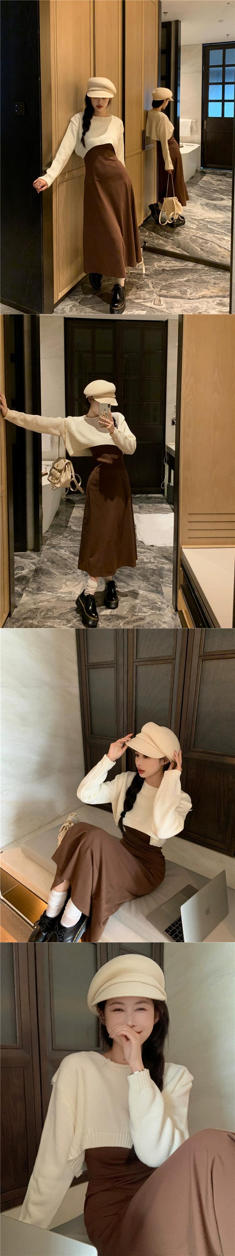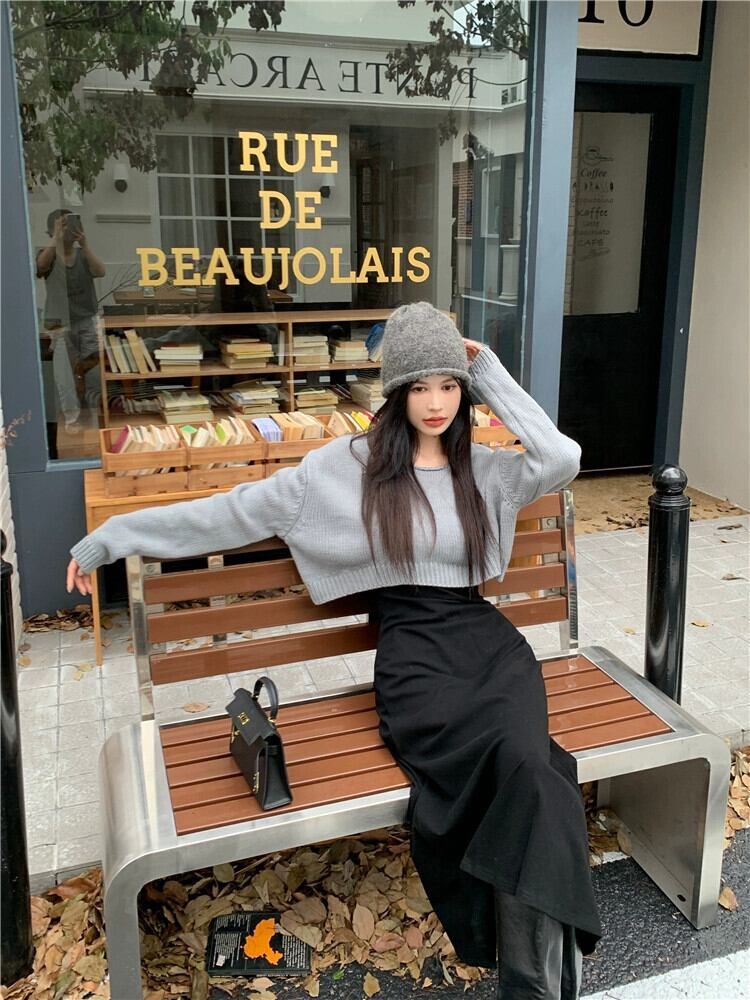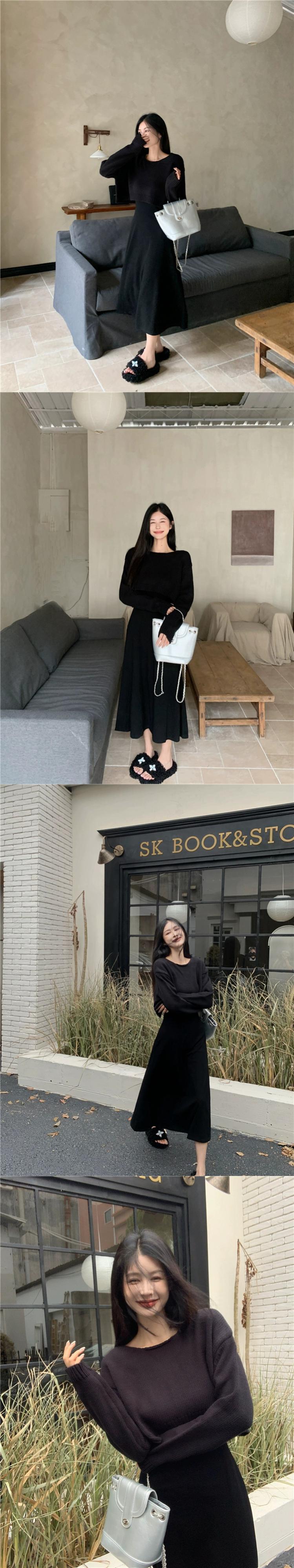 塩味または甘いショート長袖ニットセーター黒サスペンダードレス女性の秋の 2023 新しいファッションスーツ ロング ブラック 大人ガーリー スウィート キュート カジュアル オータム 秋物 missk14884742488