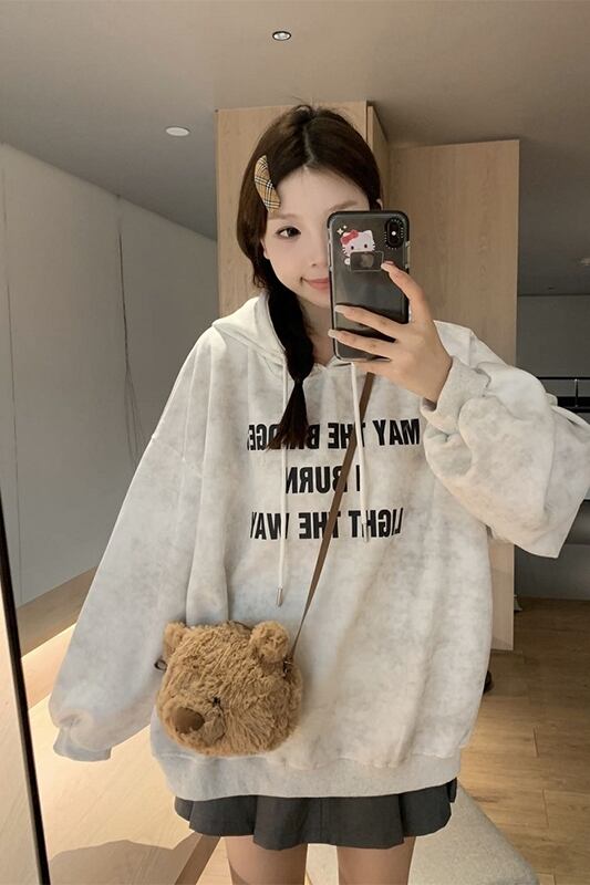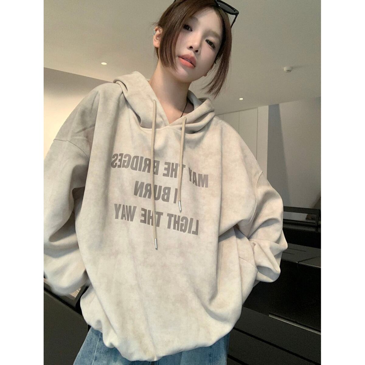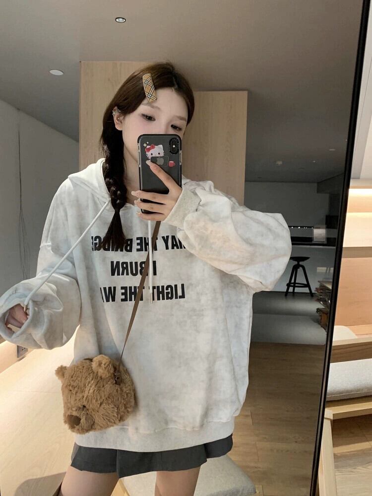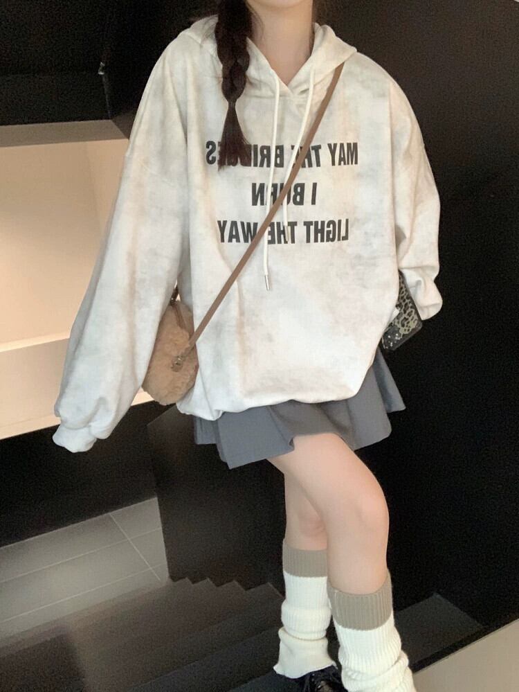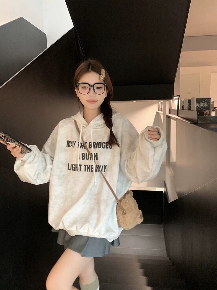 ベビーベルベット肥厚長袖スウェットシャツ女性秋の新スタイル怠惰なスタイルルーズフード付きレタープリントタイダイトップトレンディ ロング オータム 秋物 missk71983557139